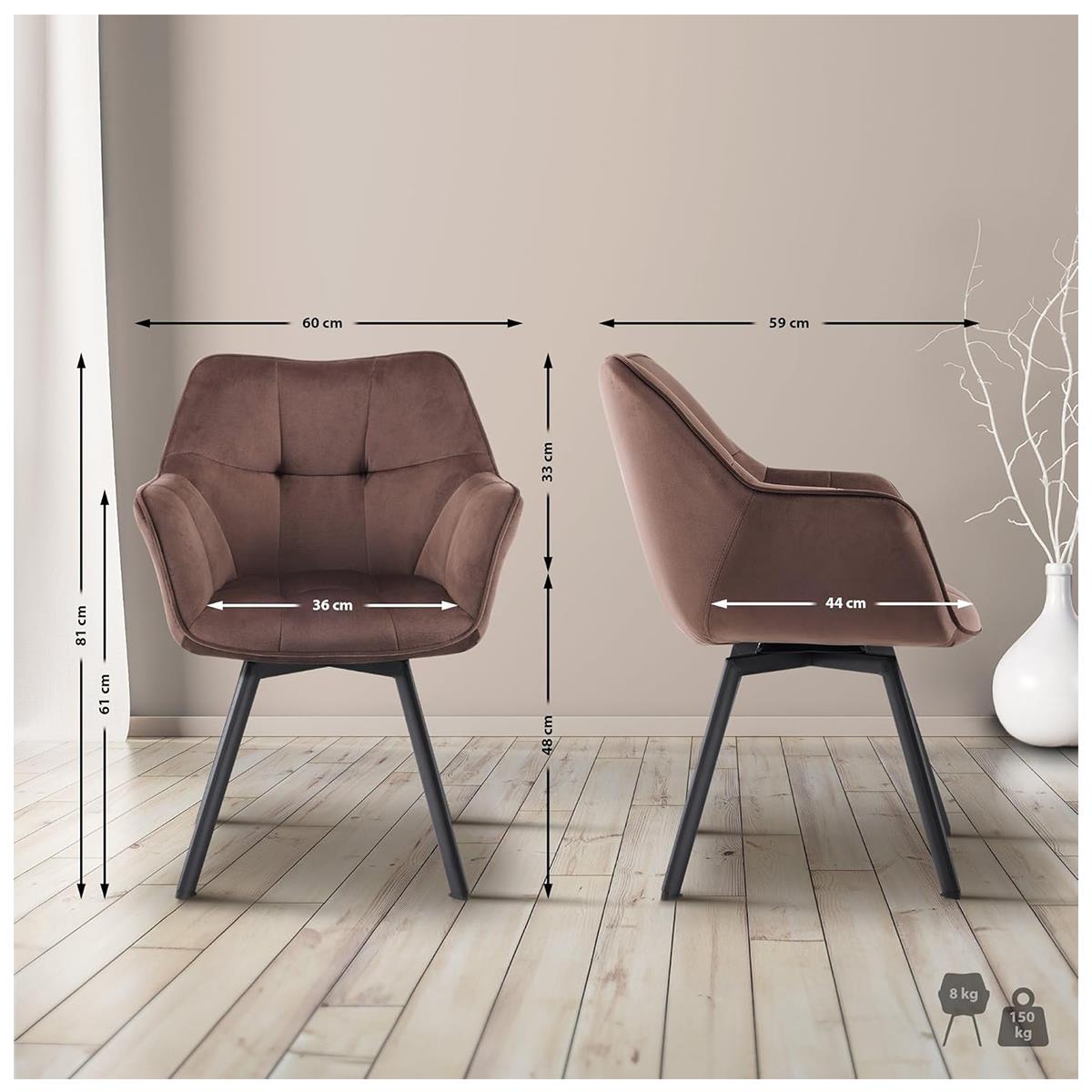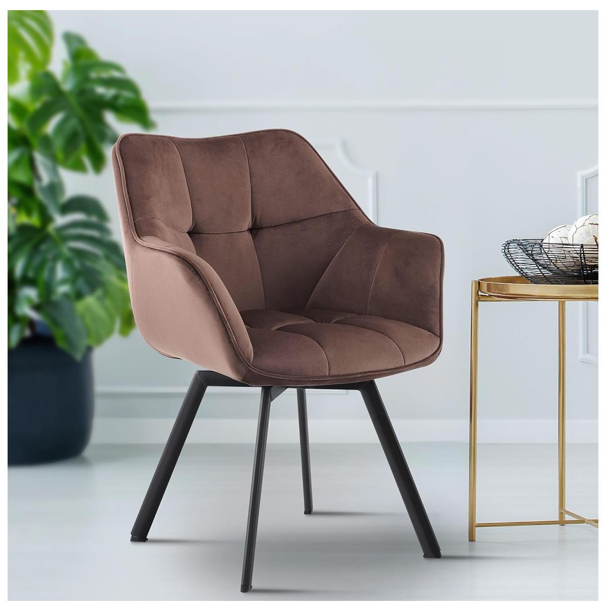 Silla de Confidente SUTTON, Estructura Metálica, Grueso Acolchado, en Terciopelo color Marrón
