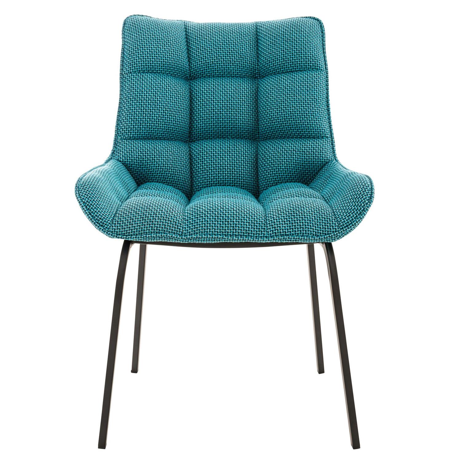 Silla de Confidente TANGO, Gran Acolchado, Patas Negras, en Tela color Turquesa