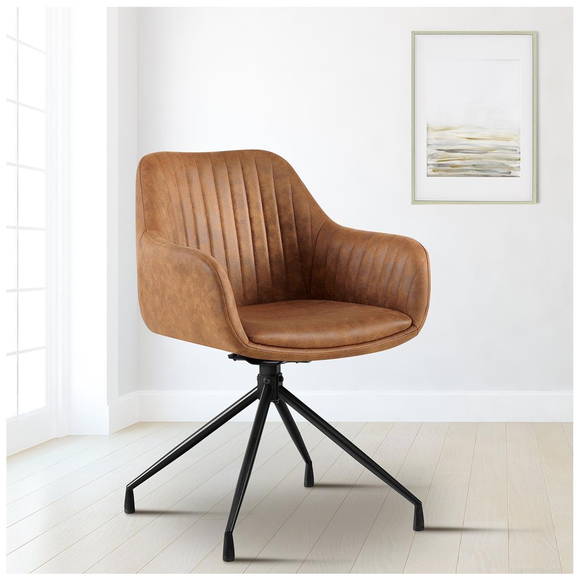 Silla de Confidente TANNER, Diseño Moderno, Giratoria 180º, en Piel color Marrón Claro