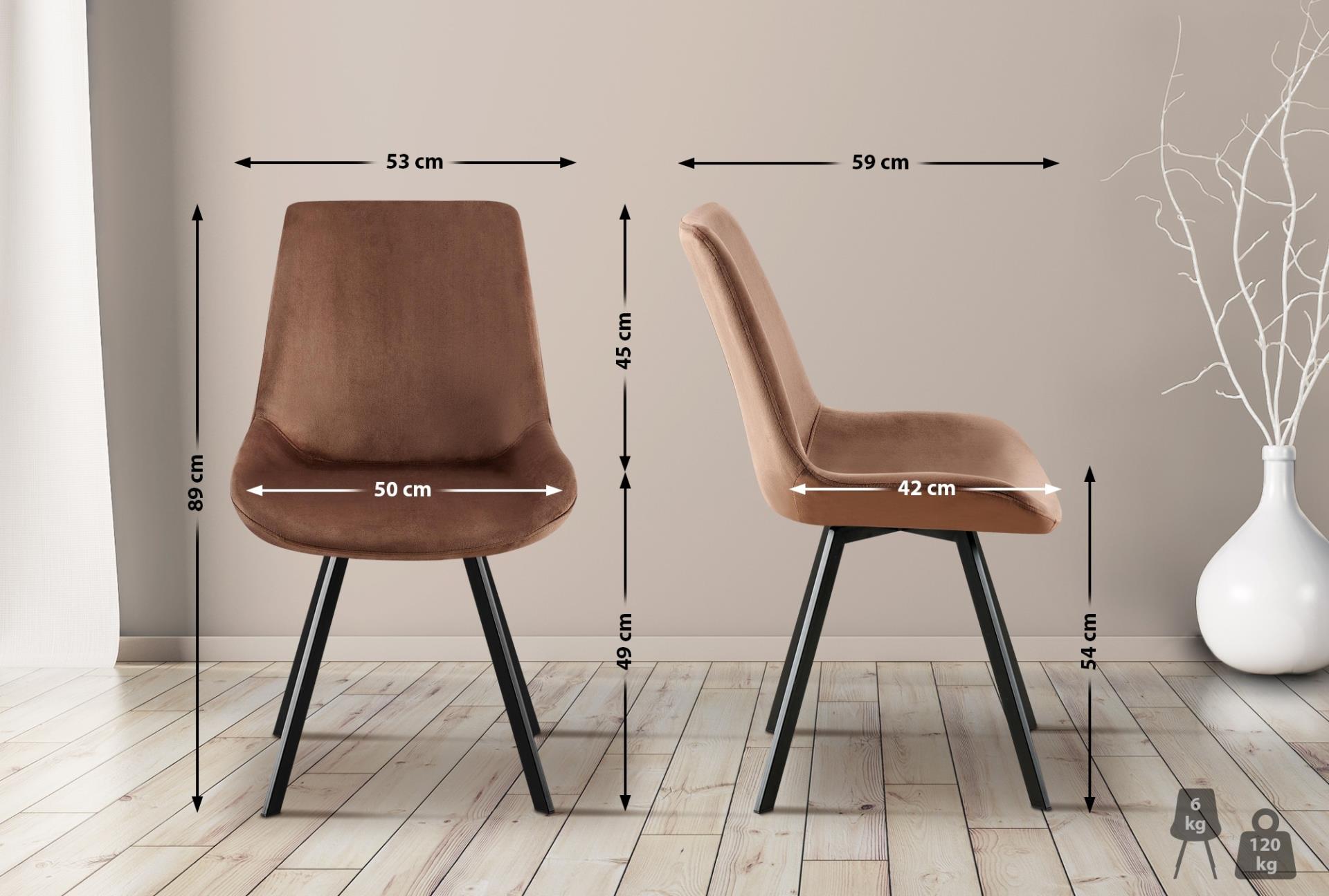 Para su fabricación se han seleccionado materiales de primera calidad, por lo que durará muchos años en perfectas condiciones. Por un lado, tenemos la estructura con 4 patas metálicas en color negro mate, que garantiza la estabilidad y resistencia de la silla. Por otro, tenemos el mencionado acolchado que ha sido tapizado con terciopelo de gran calidad de suave y agradable tacto. Este modelo resiste hasta 120 kg.