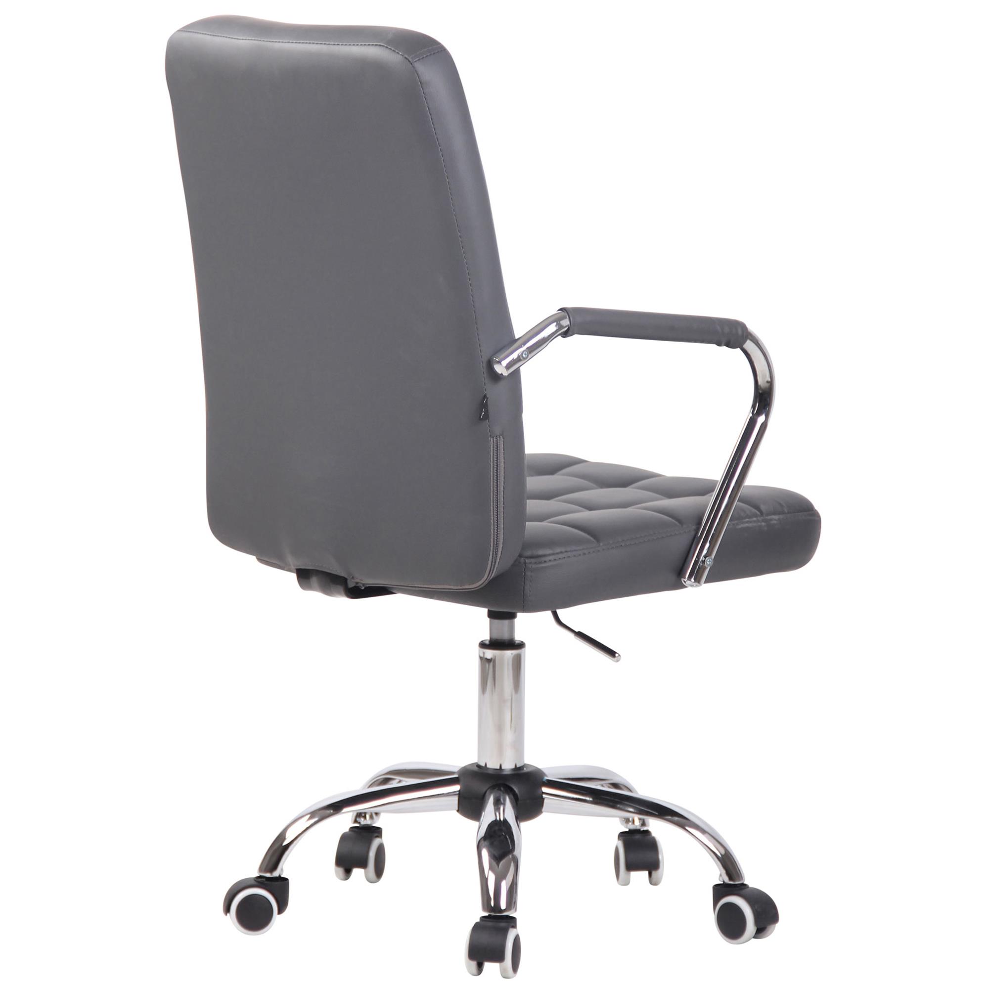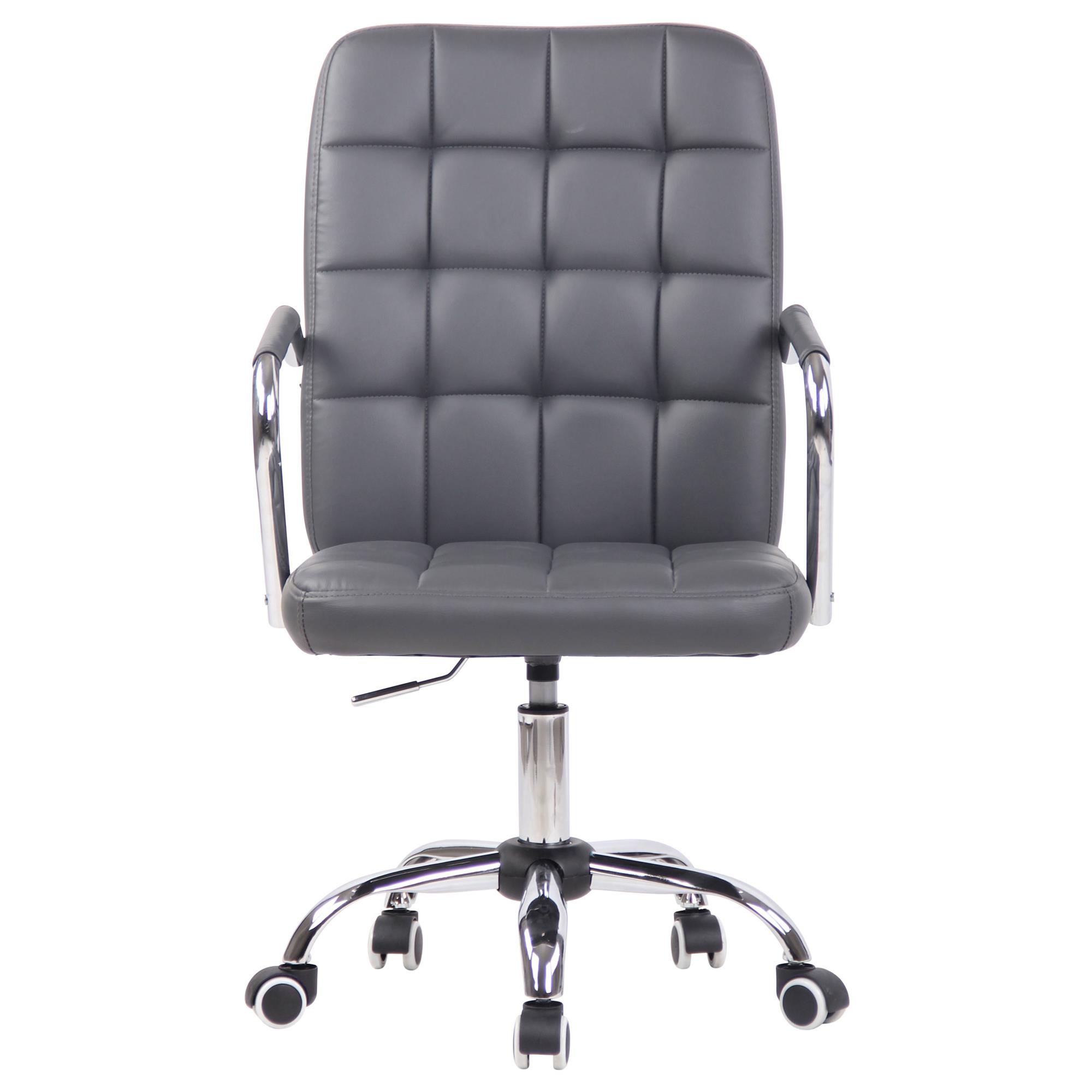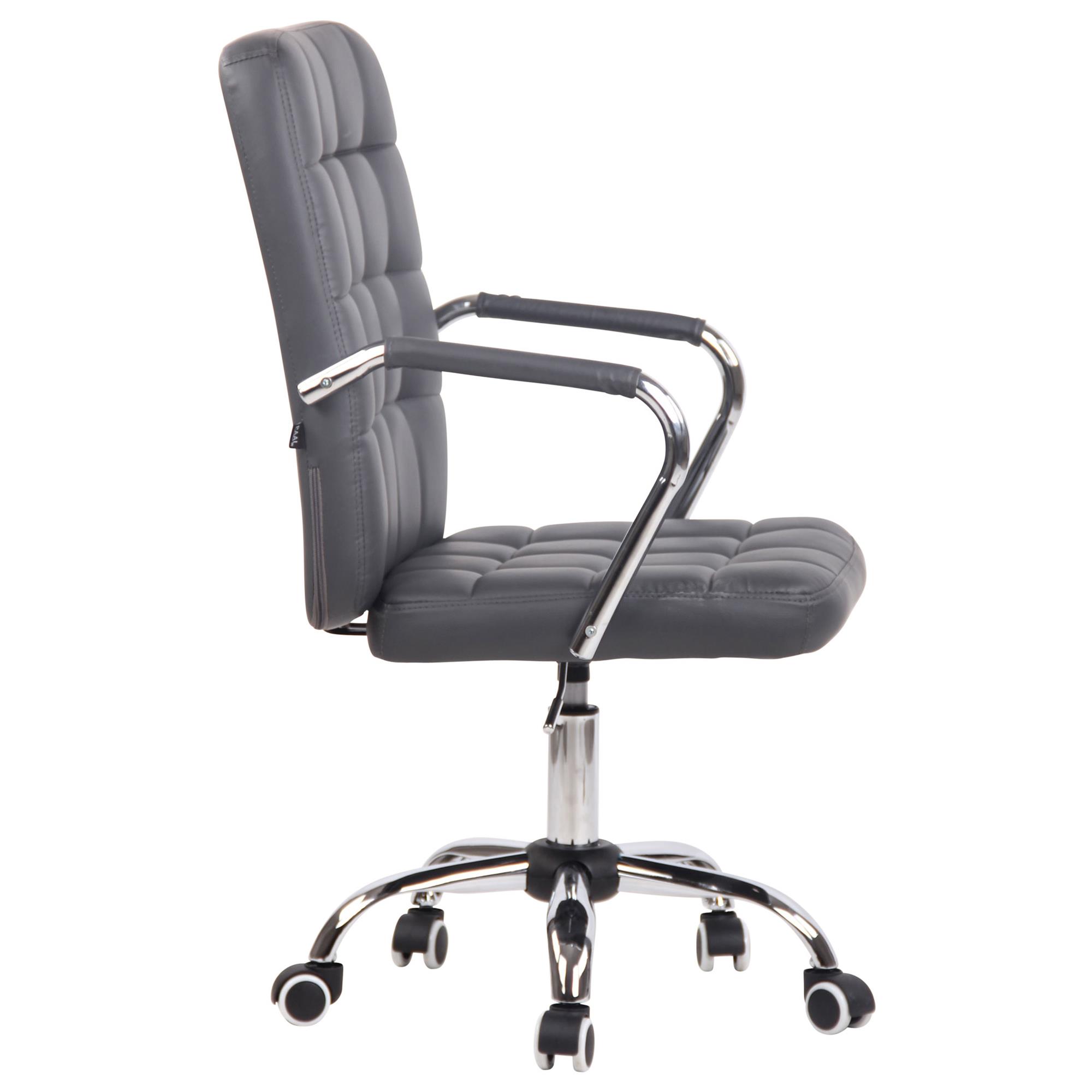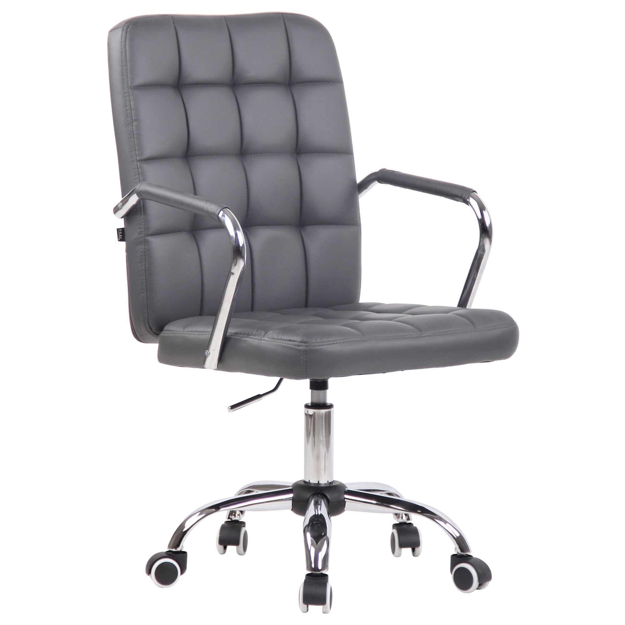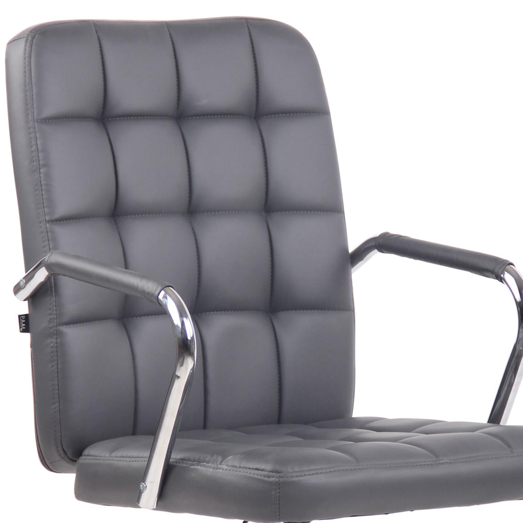 Silla de Oficina BOLTON, Grueso Acolchado, Base Metálica, en Piel color Gris