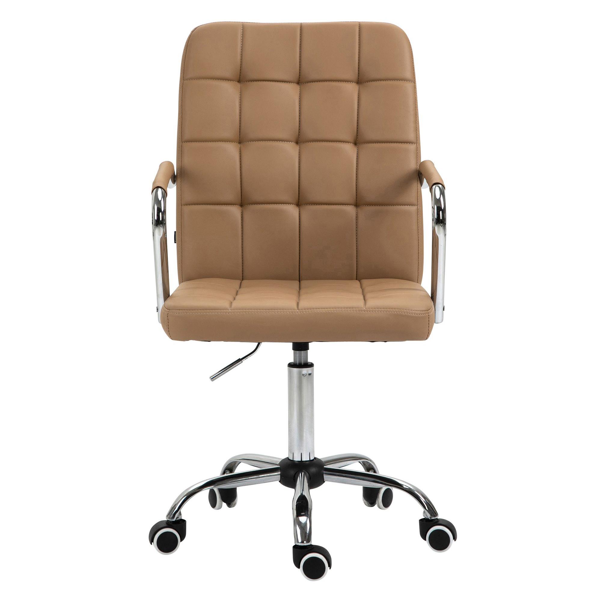 Silla de Oficina BOLTON, Grueso Acolchado, Base Metálica, en Piel color Marrón Claro
