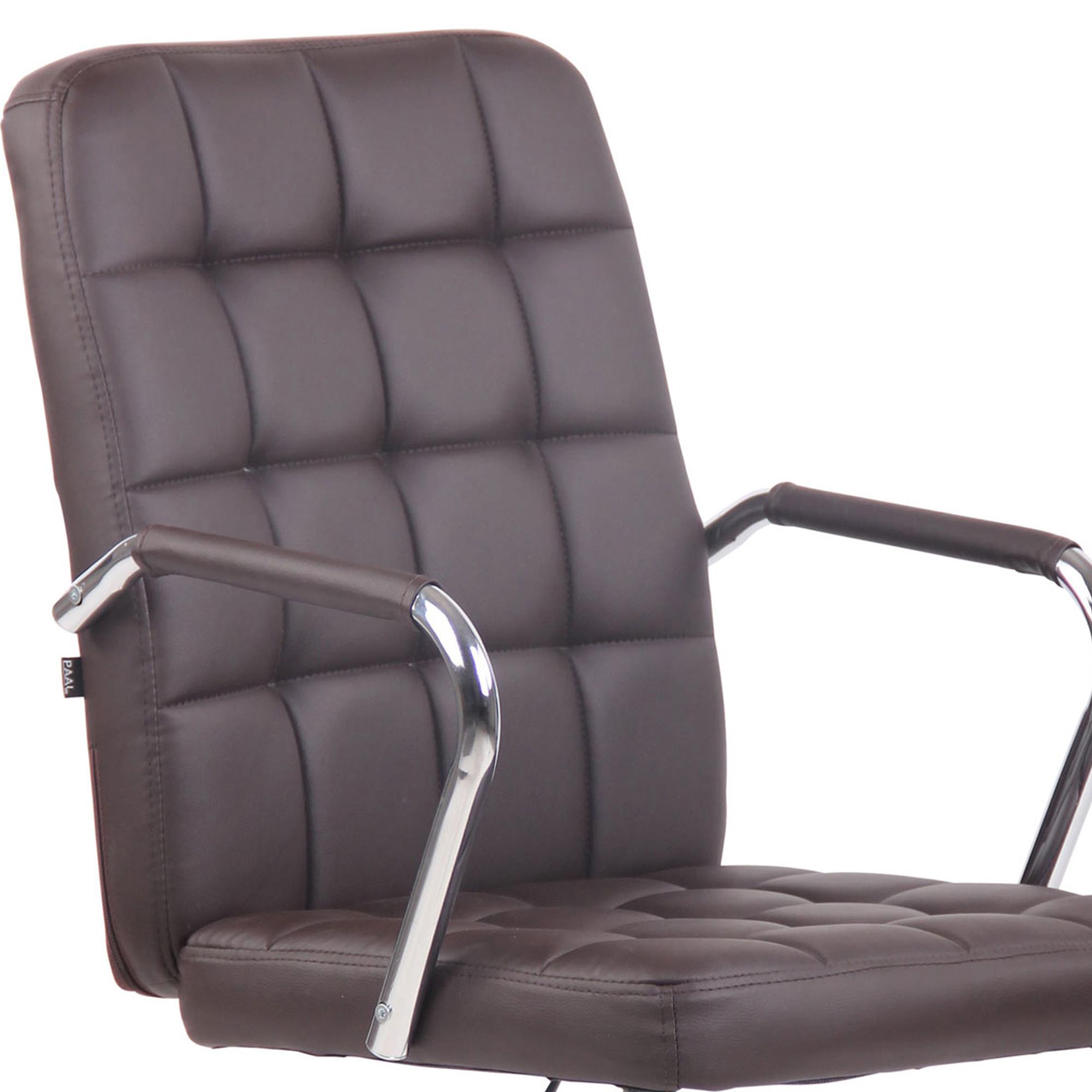 Silla de Oficina BOLTON, Grueso Acolchado, Base Metálica, en Piel color Marrón Oscuro