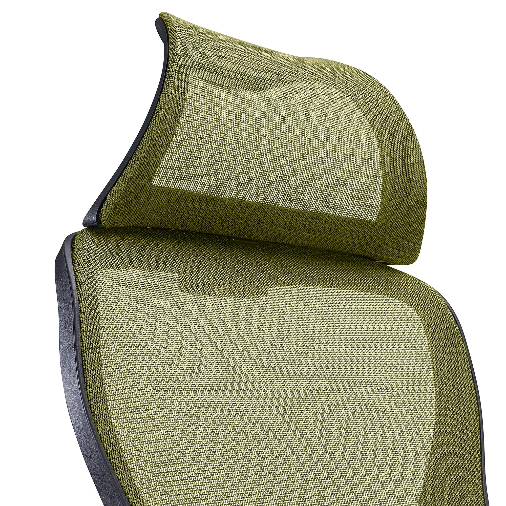 Lo más destacable de su respaldo es el soporte lumbar integrado. Gracias a la malla transpirable y su flexibilidad la silla se adapta totalmente a tu espalda. En este caso estamos ante la versión con reposacabezas, integrado con el diseño del respaldo, actuando incluso como prolongación del mismo.