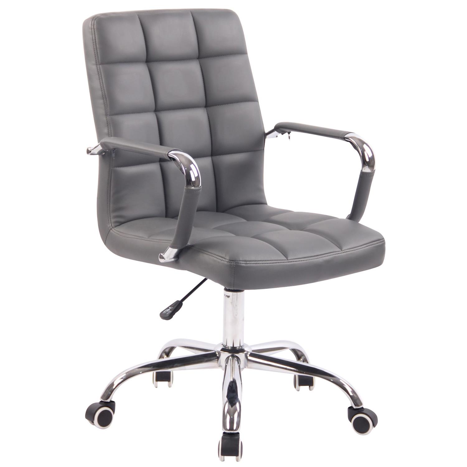 Silla de Oficina DELAN PRO, Gran Acolchado, Base Metálica, Tapizada en Piel Gris