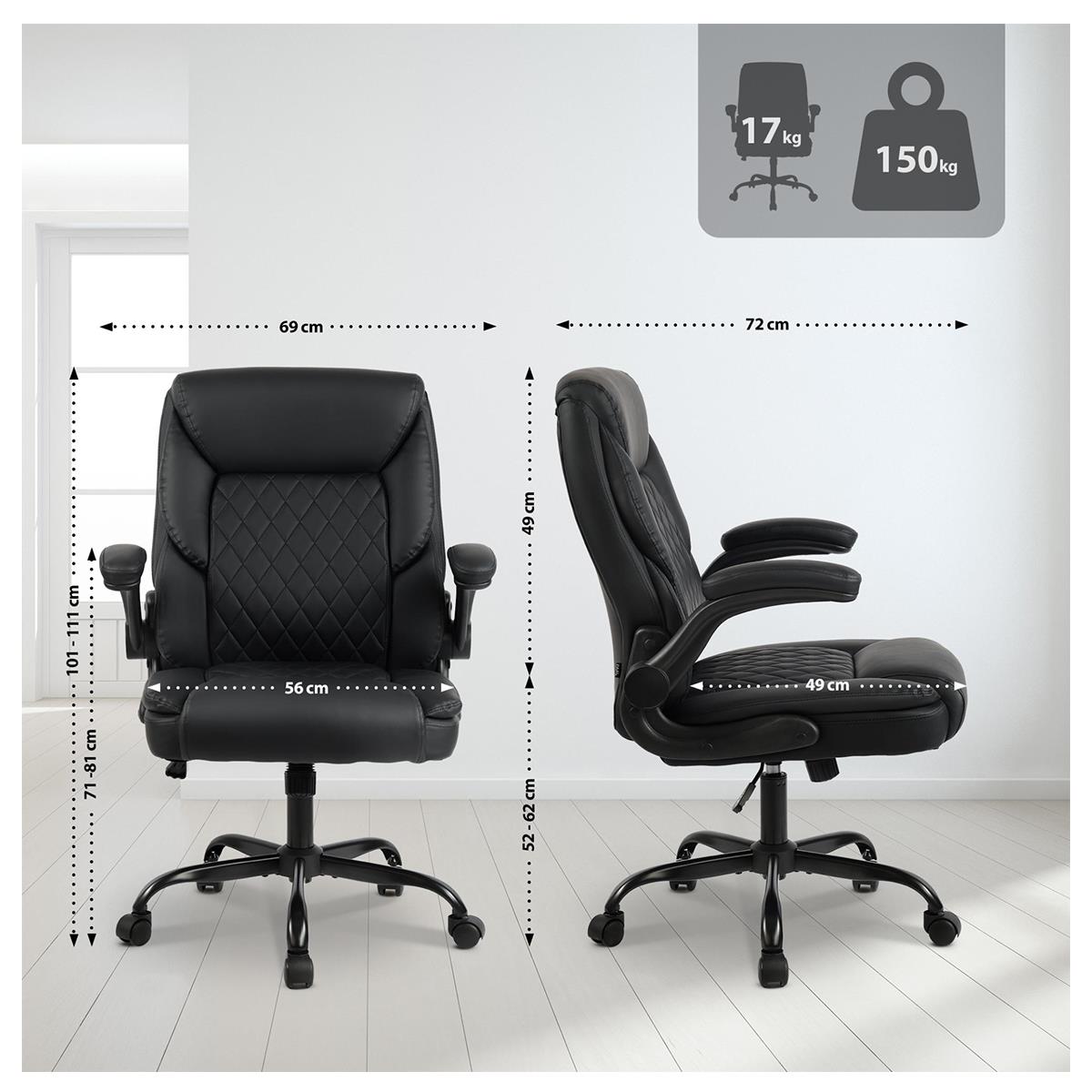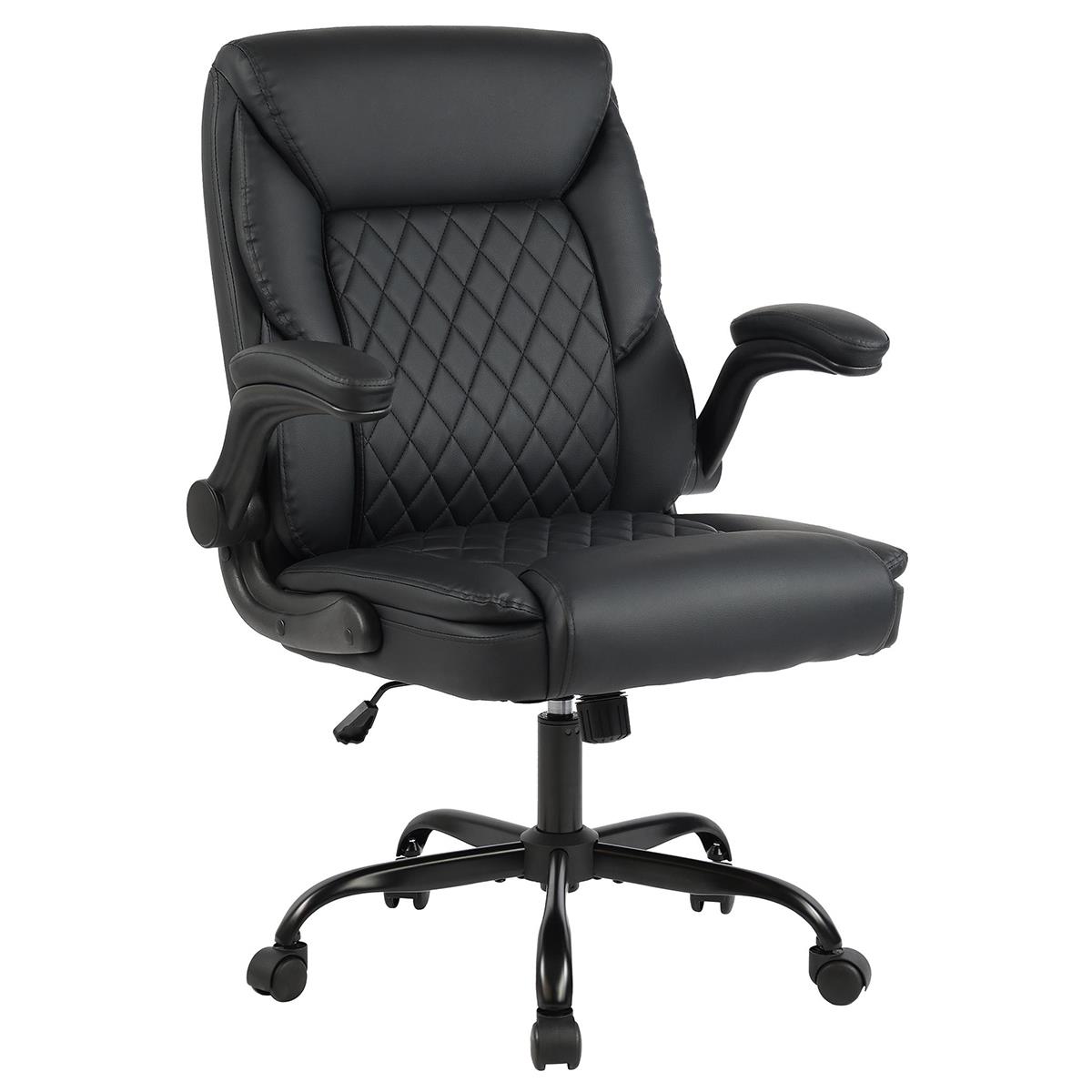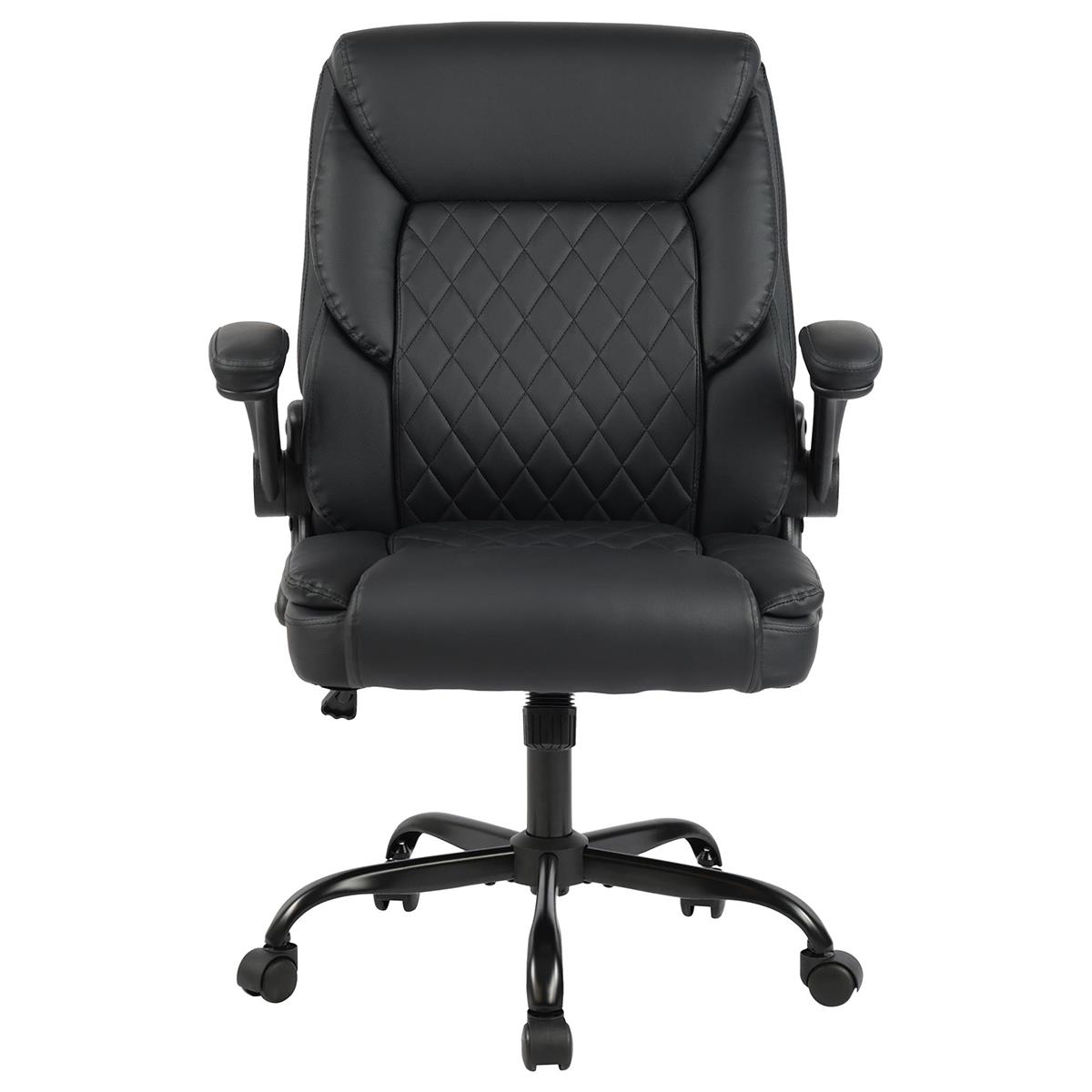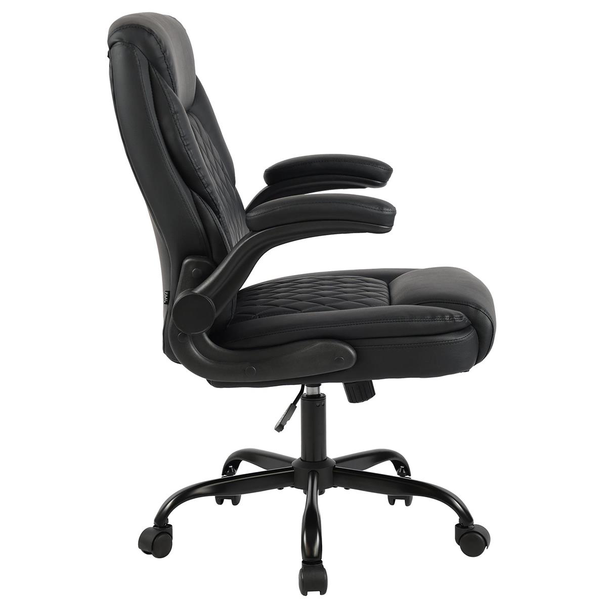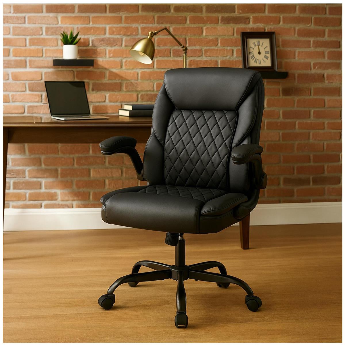 Silla de Oficina EMMY, Grueso Acolchado, Brazos Abatibles, en Piel color Negro