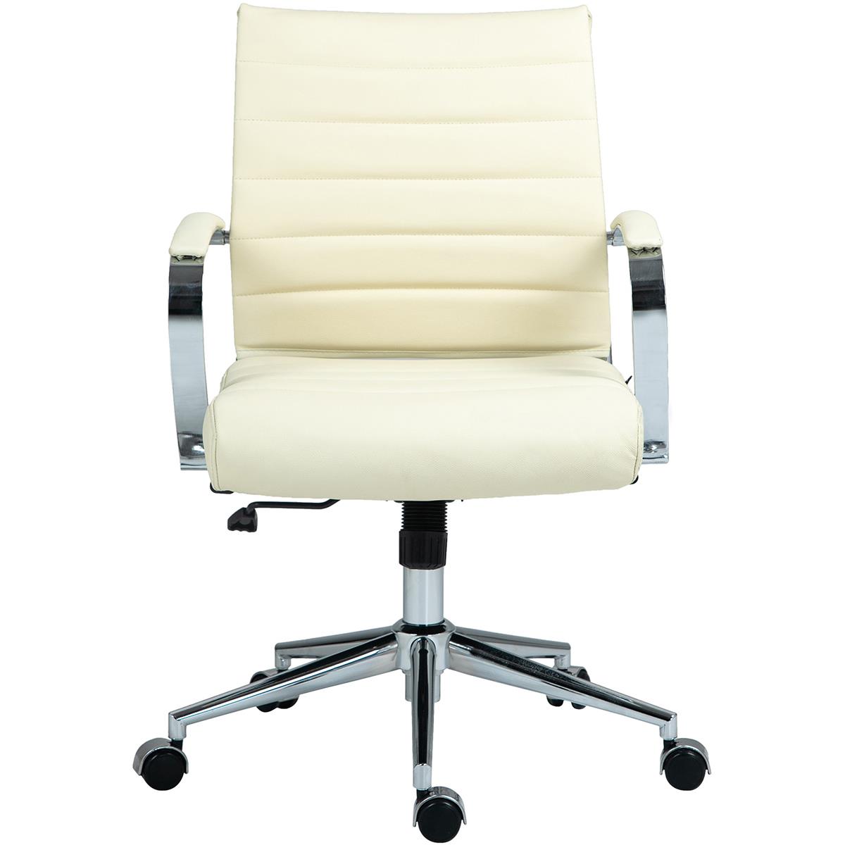 Silla de Oficina EVERY, Diseño Elegante, Estructura Metálica, en Piel Natural color Crema