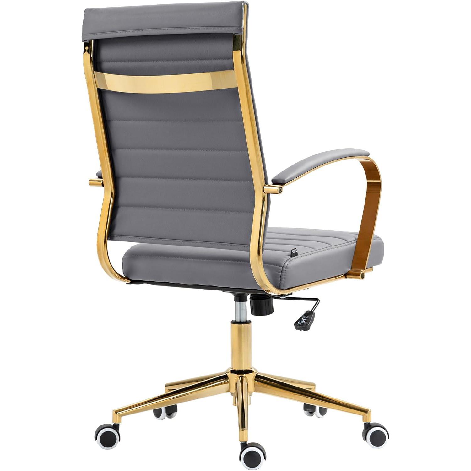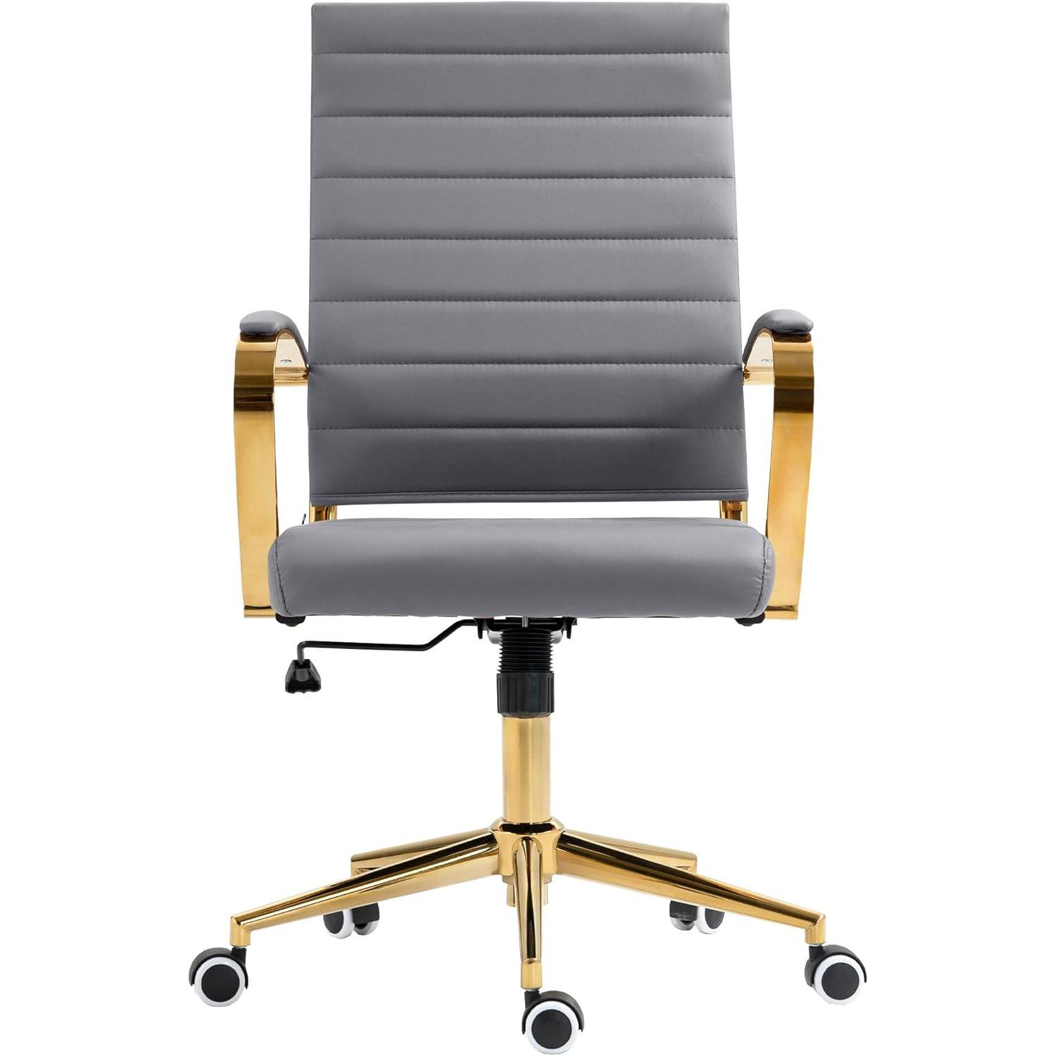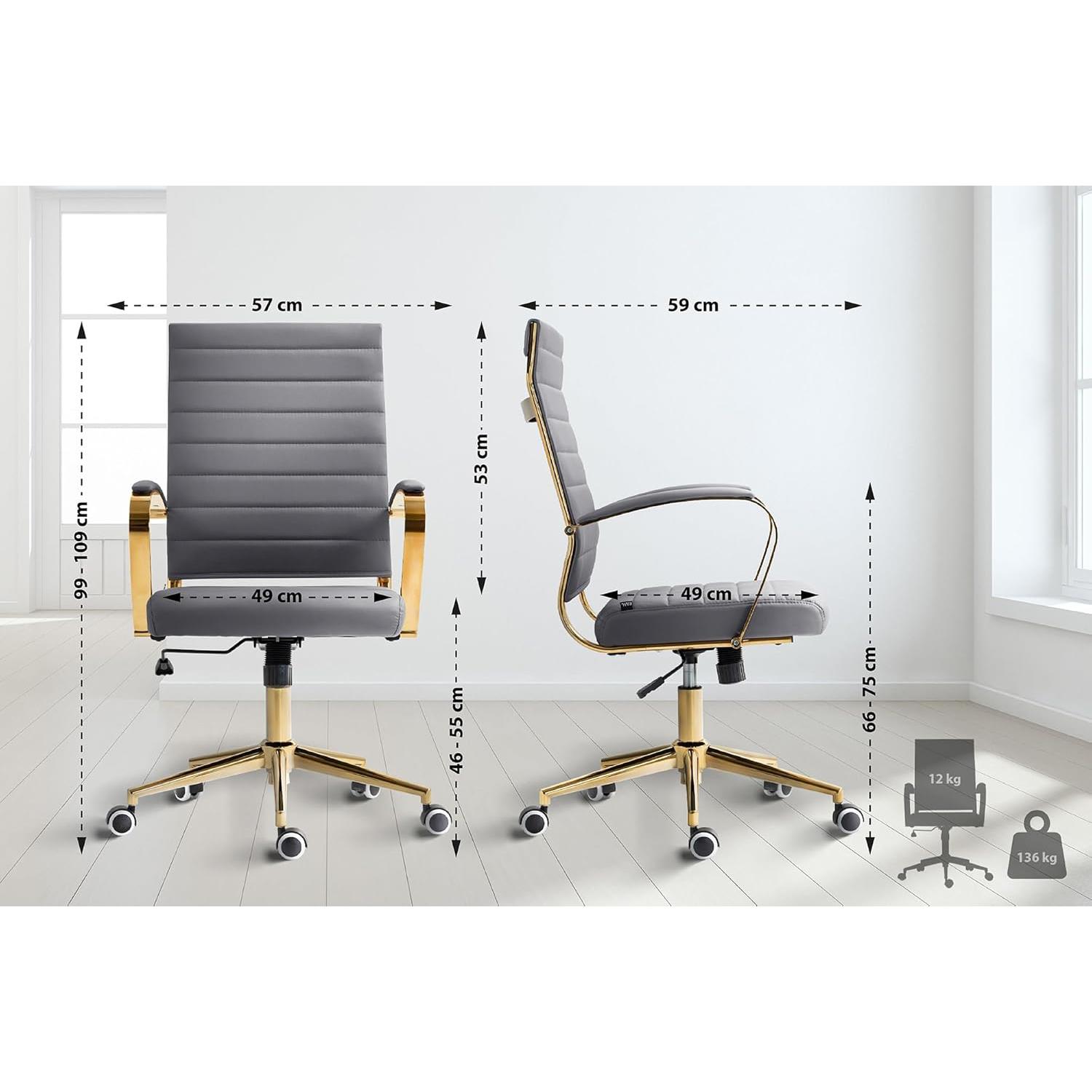 Silla de Oficina KENNETH, Diseño Elegante, Estructura Metálica Dorada, en Piel color Gris
