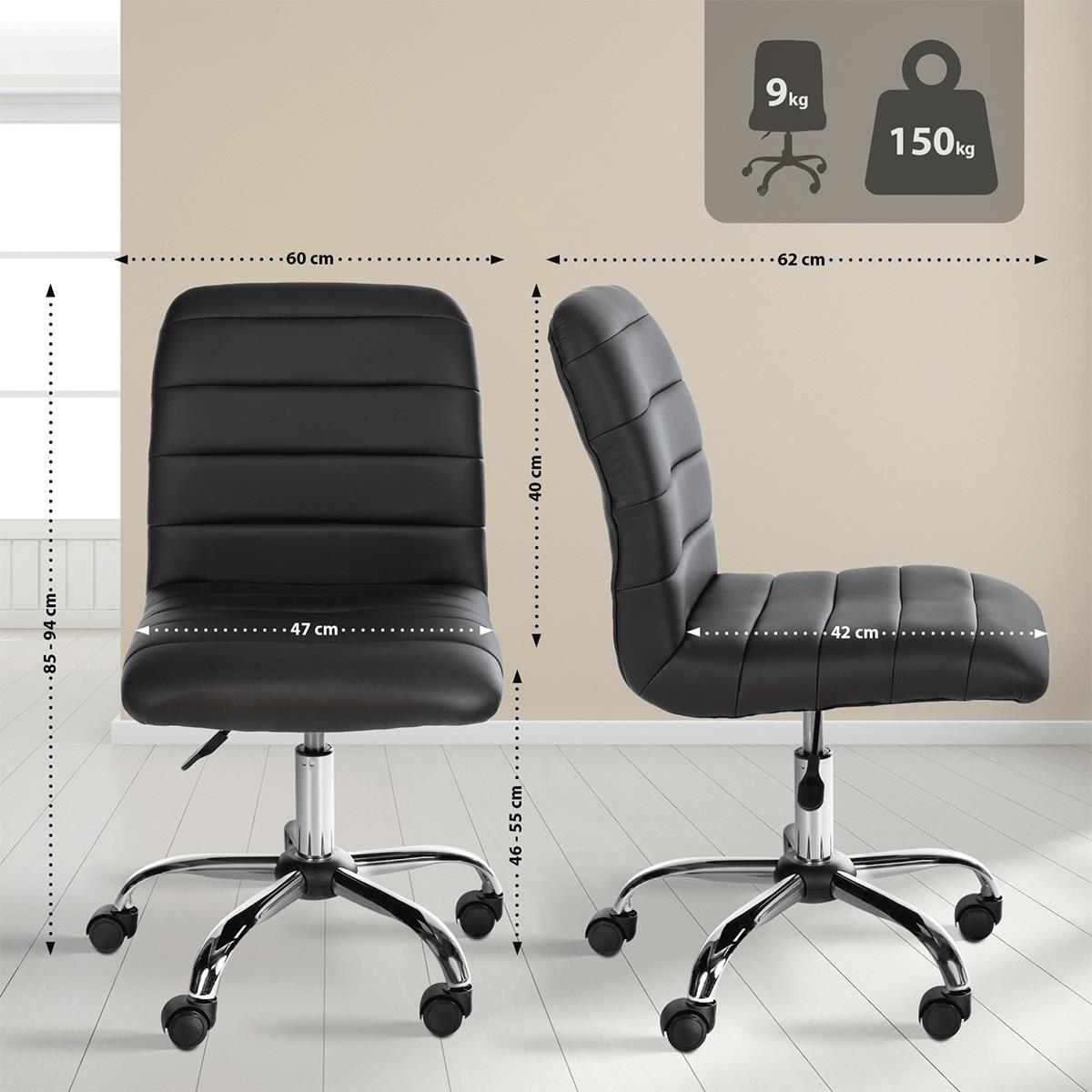 Tanto el asiento como el respaldo están acolchados y garantizan una gran comodidad, incluso si se utiliza la silla durante varias horas. Gracias a sus pequeñas dimensiones y su carencia de reposabrazos, la silla se puede guardar fácilmente debajo de cualquier mesa de trabajo y ofrece una mayor libertad de movimiento. Es un modelo perfecto para espacios reducidos.