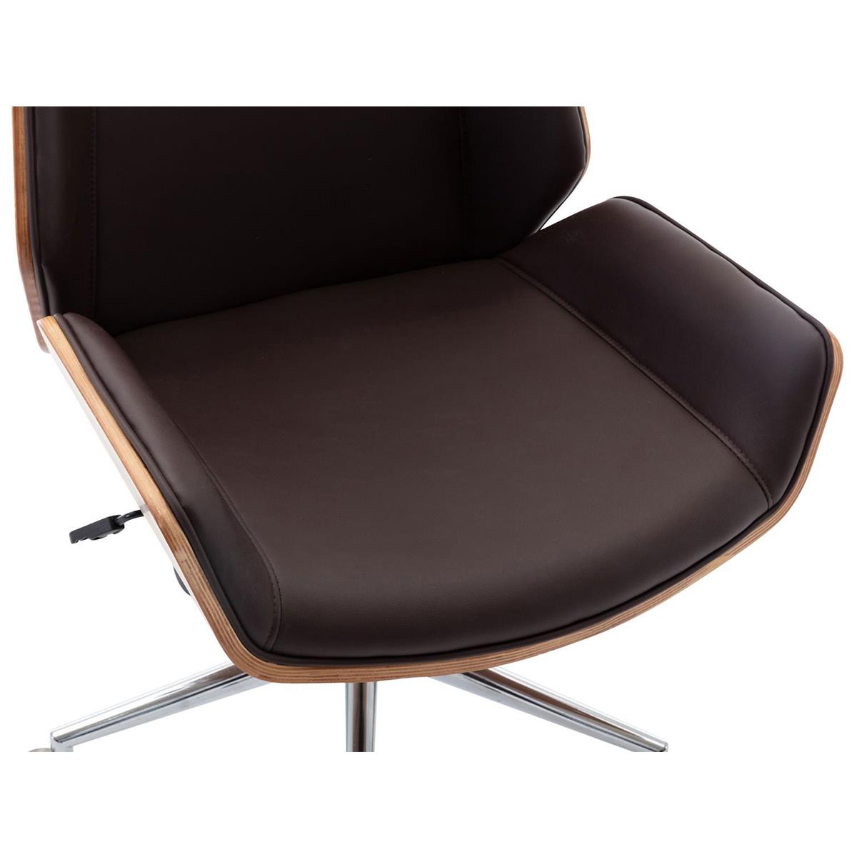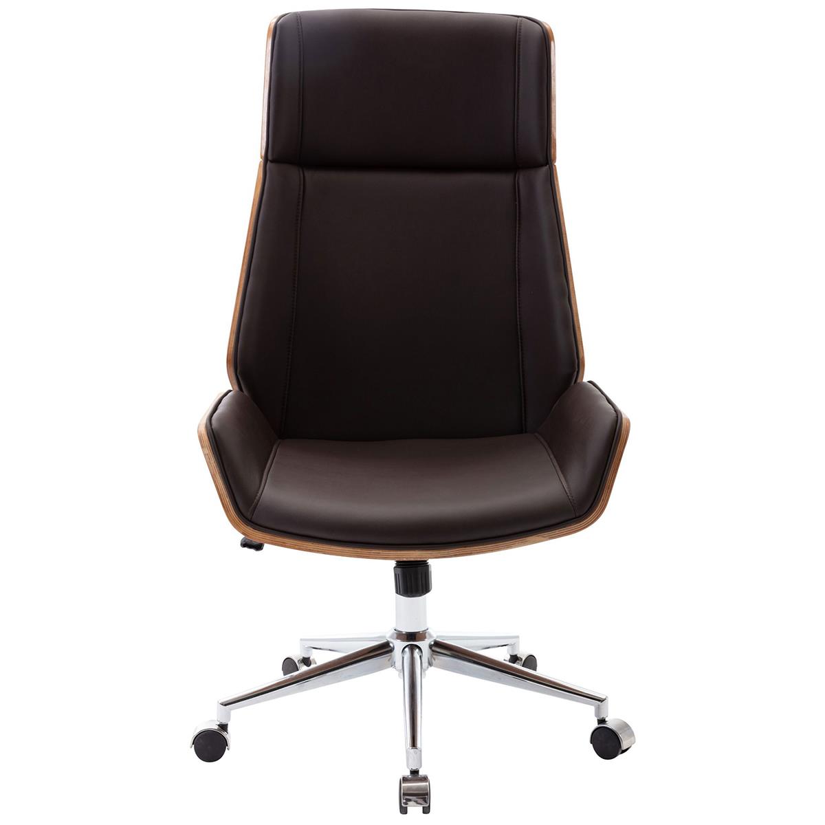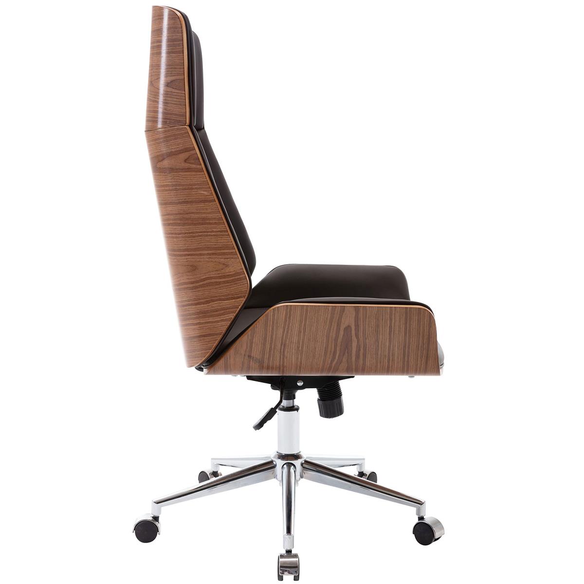 Silla de Oficina KINGSTON, Elegante Diseño, Reposacabezas Integrado, en Madera Nogal y Piel color Marrón