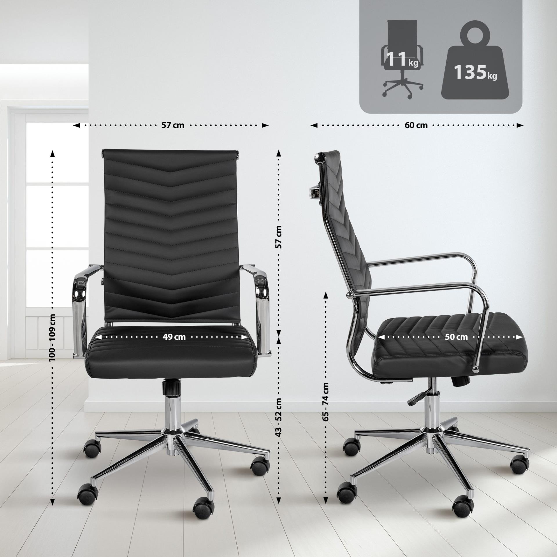 Silla de Oficina KOBE, Diseño con Elegantes Costuras, Base Metálica, en Piel color Negro
