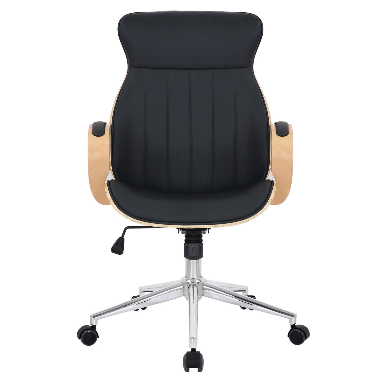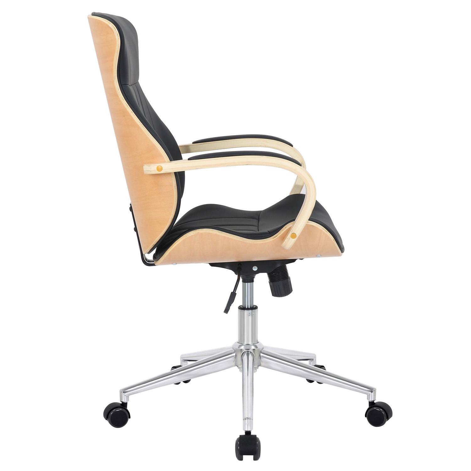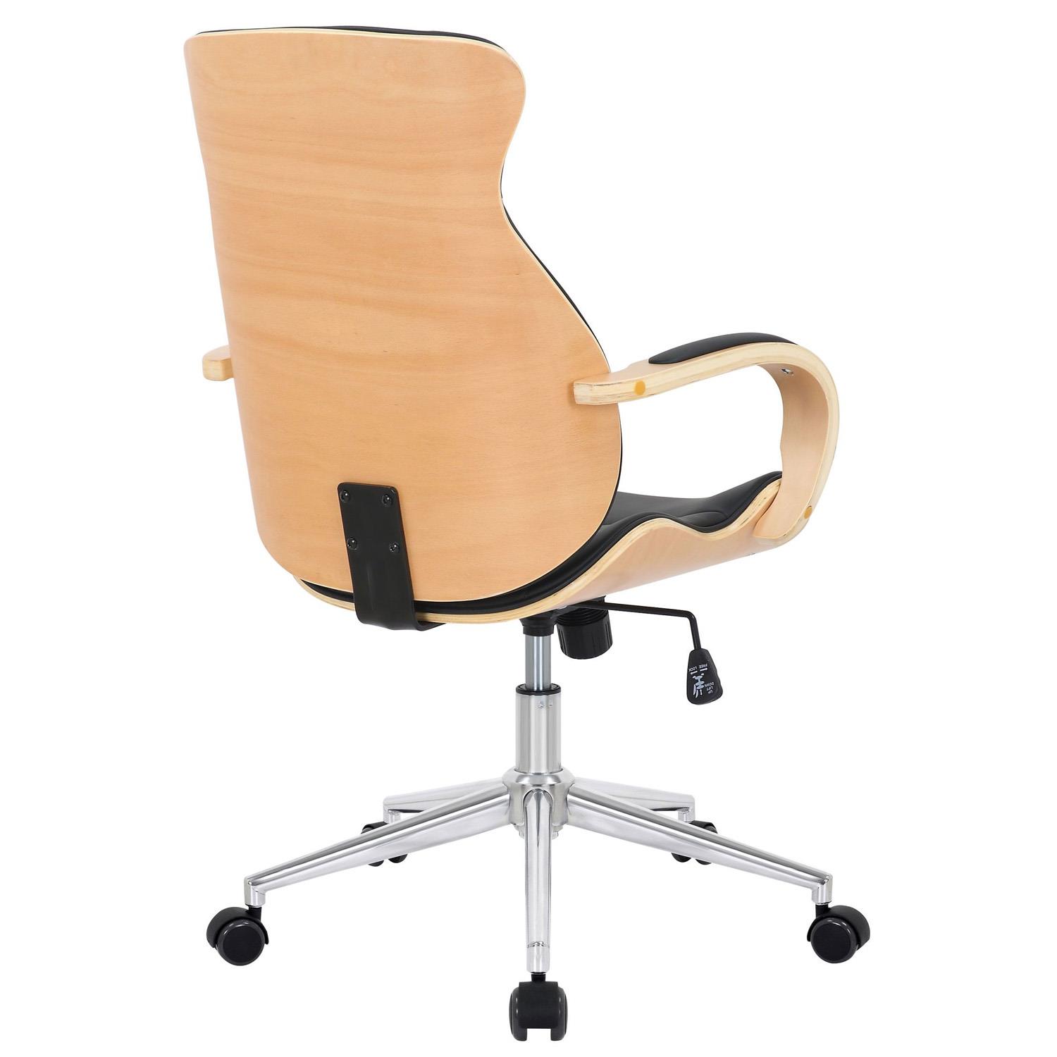 Silla de Oficina MELINA, Diseño Moderno y Elegante, en Madera Natural y Piel color Negro