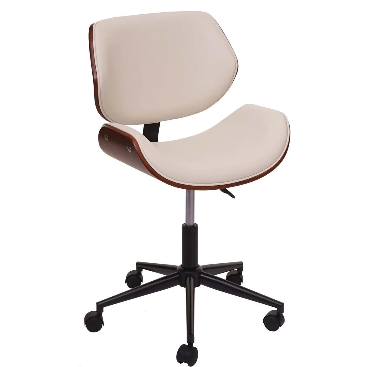 Principalmente destaca por la madera curvada de color nogal con la que se ha contruido el asiento que, en contraste con la piel sintética de colores sobrios y elegantes, ofrece un diseño muy atractivo y además, aporta la comodidad y ergonomía necesaria en una silla de oficina operativa.