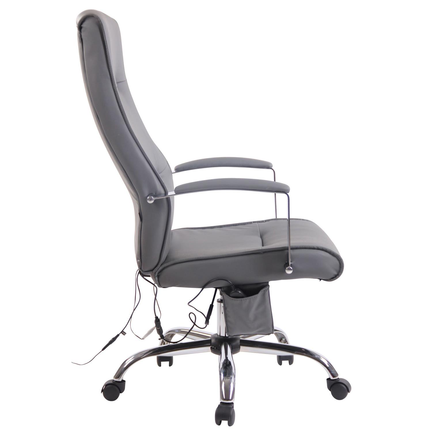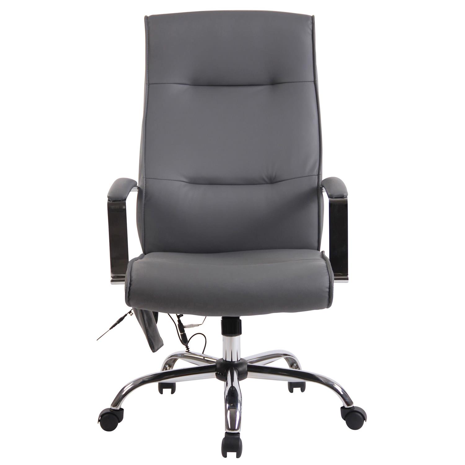 Silla de Oficina PONTIAC MASAJE PIEL, Grueso Acolchado, Base Metálica, color Gris