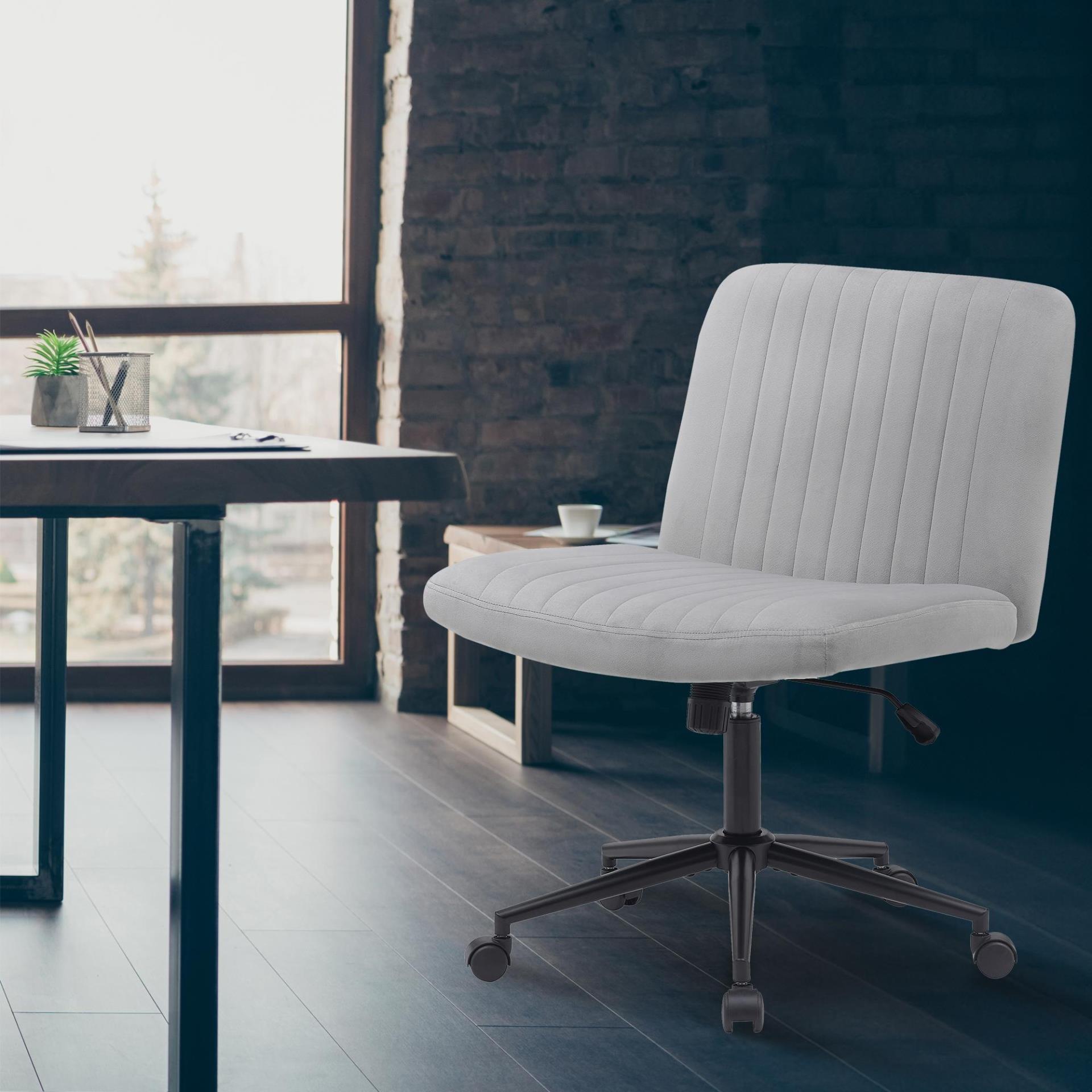 Silla de Oficina SONNY, Diseño Compacto, Base Metálica, en Terciopelo color Gris Claro