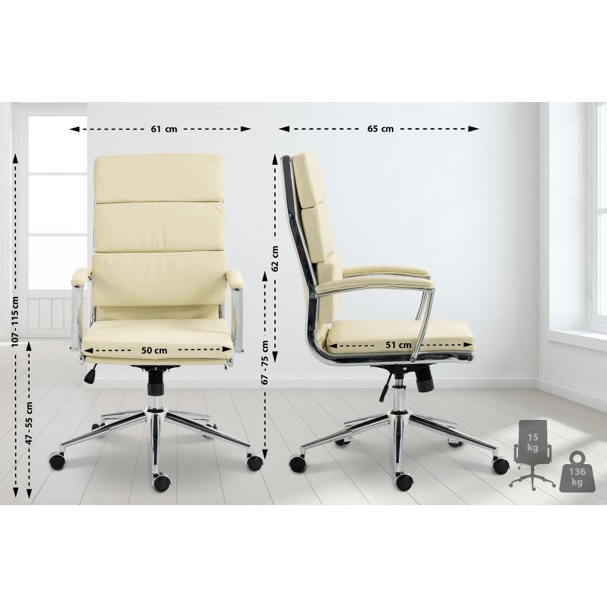 Silla de Oficina TODRA, Elegante Diseño Clásico, Muy Confortable, en Piel Crema