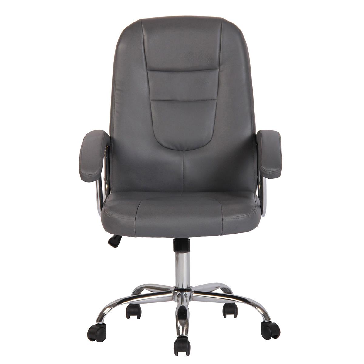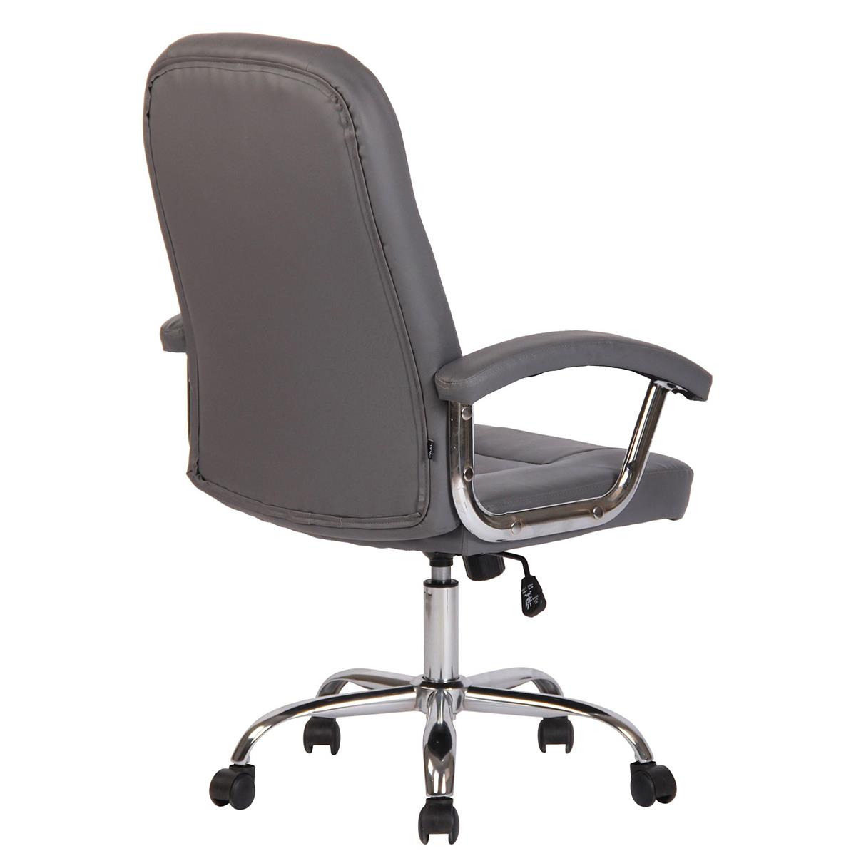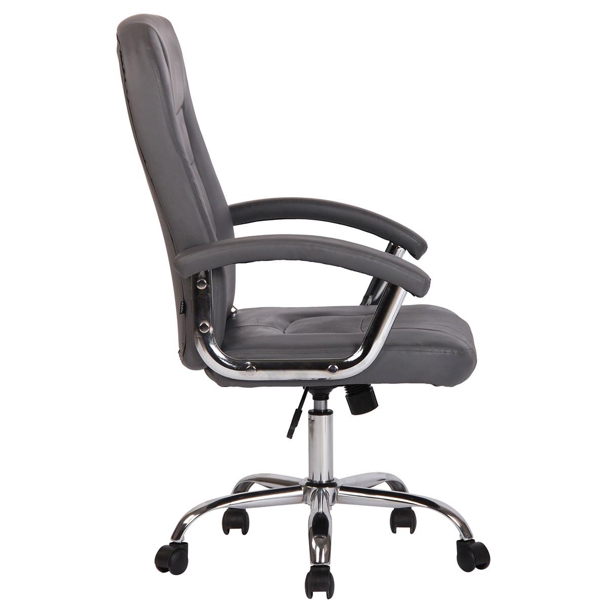 Silla de Oficina TRAVIS, Grueso Acolchado, Base Metálica, Tapizada en Piel color Gris