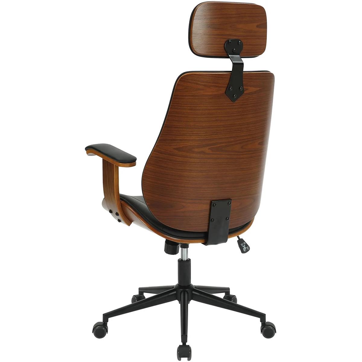 Silla de Oficina TUFI, Gran Acolchado, Elegante Diseño en Madera Nogal y Piel color Negro