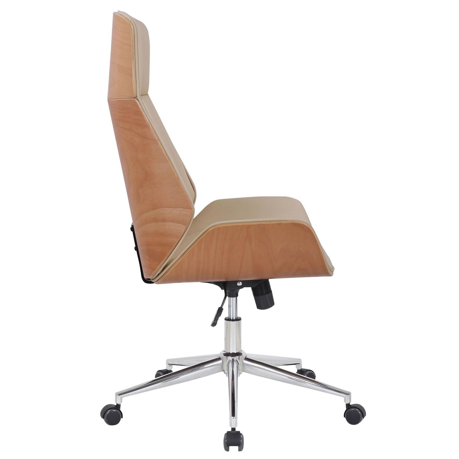 Silla de Oficina VAREN, Diseño Moderno y Elegante, en Madera Natural y Piel color Crema