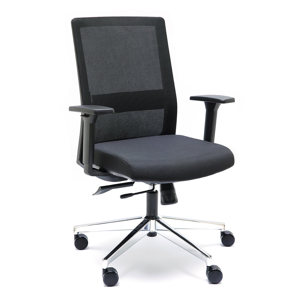 De hecho, este modelo es sobresaliente en cuanto al confort. El respaldo ergonómico con soporte lumbar ajustable en altura favorece una postura correcta y la malla transpirable asegura frescor y comodidad incluso después de varias horas de uso. A destacar también el asiento ajutable en profundidad tapizado en tela y cómodamente acolchado con espuma de alta densidad, un material que garantiza comodidad y resistencia.