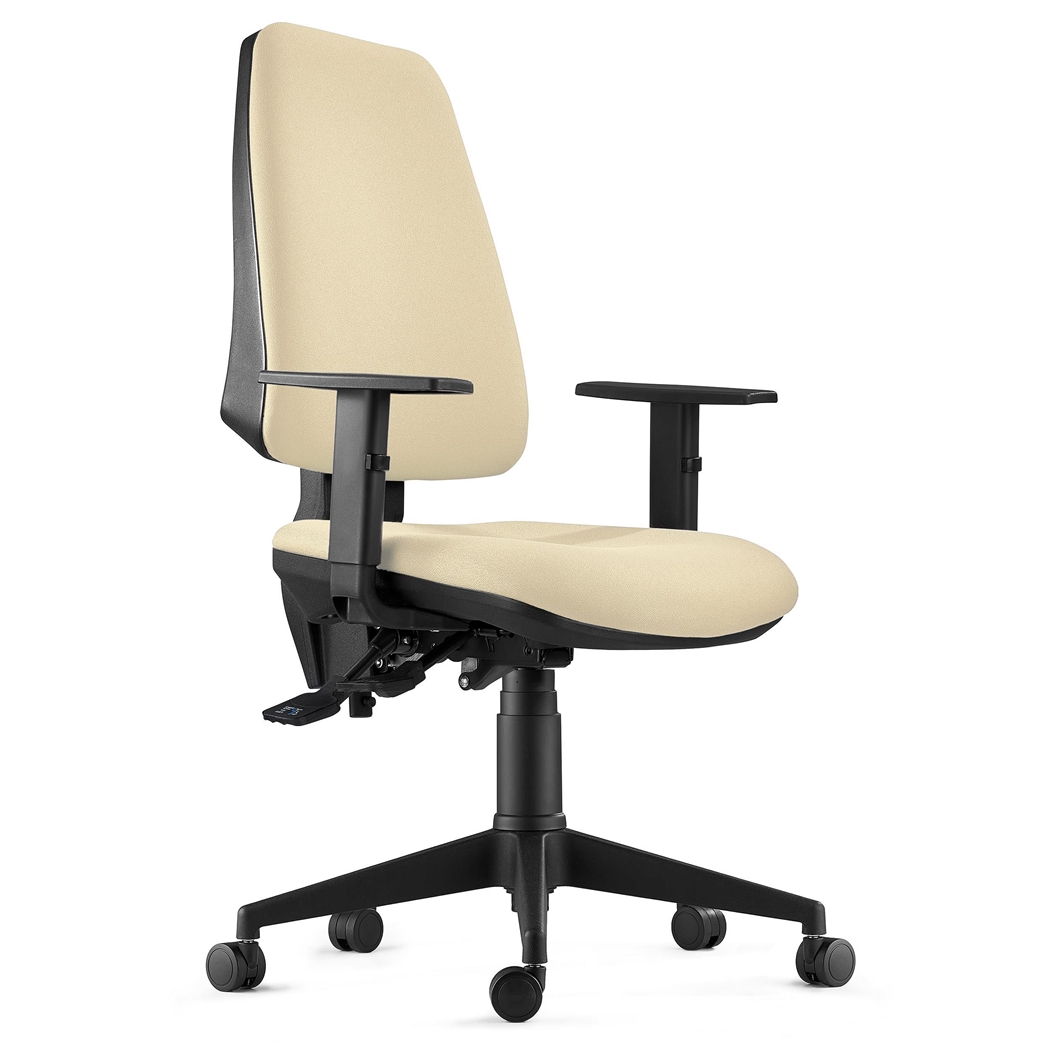 Silla Ergonómica INDIANA, en Tela color Crema, con Brazos Ajustables