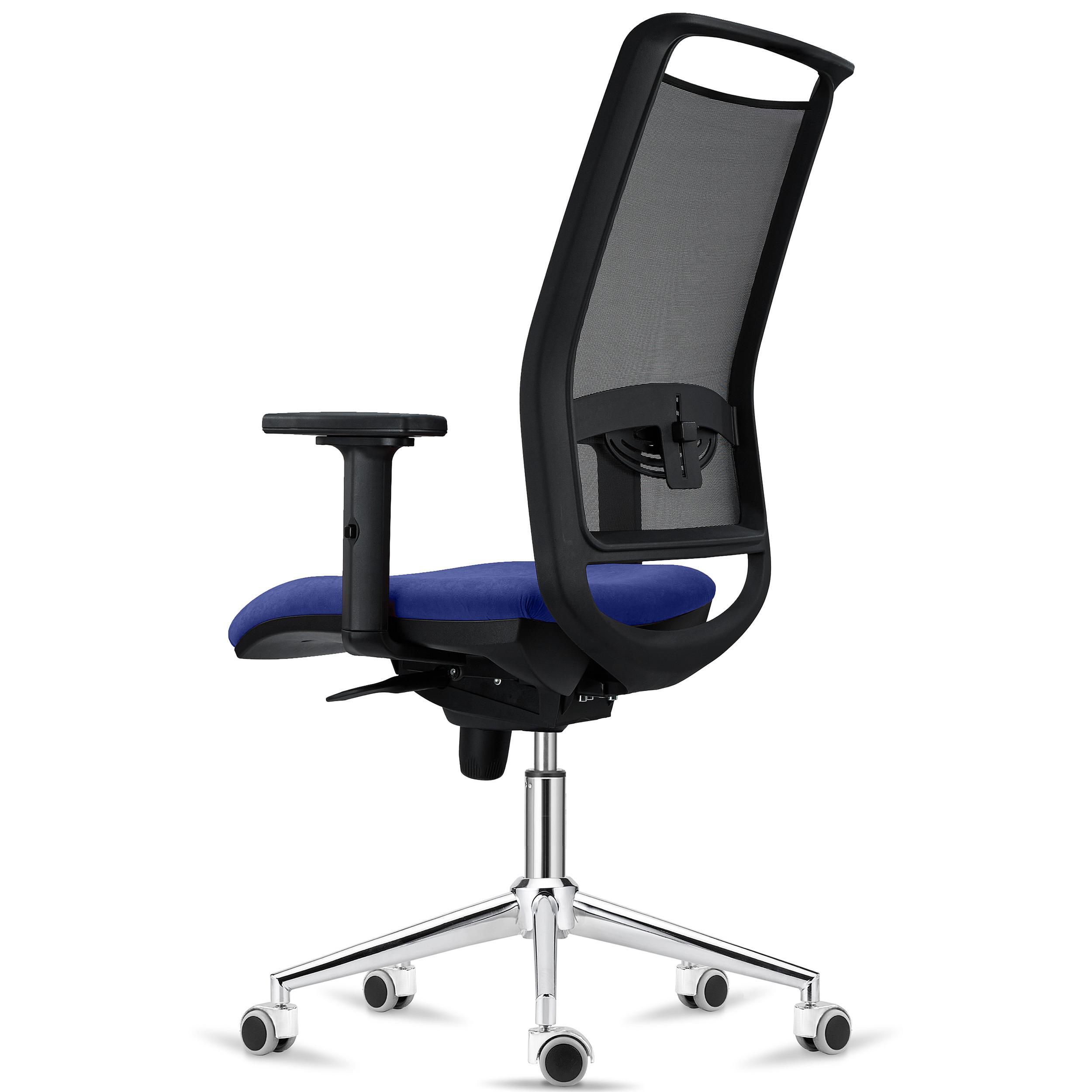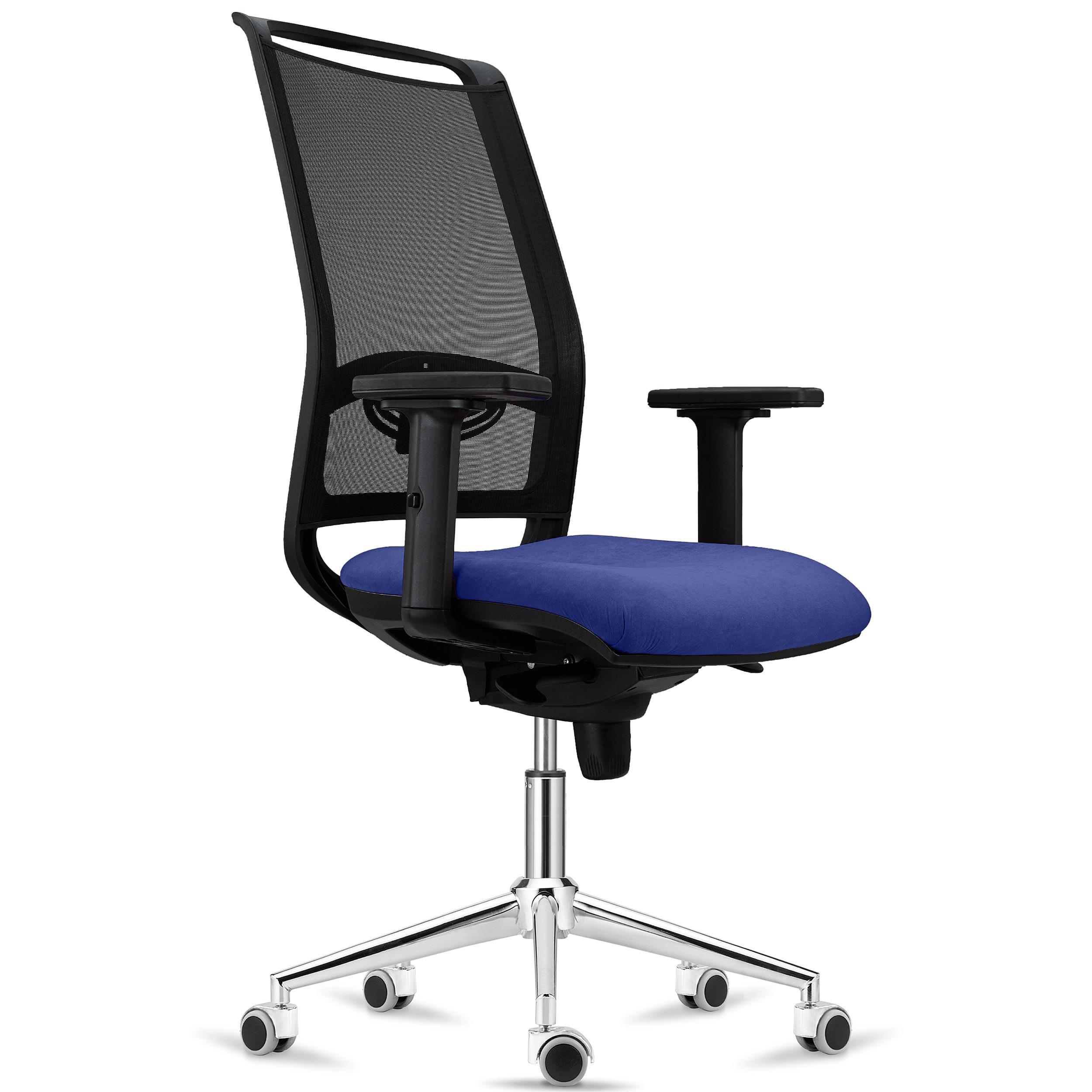 Silla Ergonómica NEPTUNO, Soporte Lumbar, Uso 8 Horas, Base Metálica, en Malla Negra y Tela Azul Oscuro