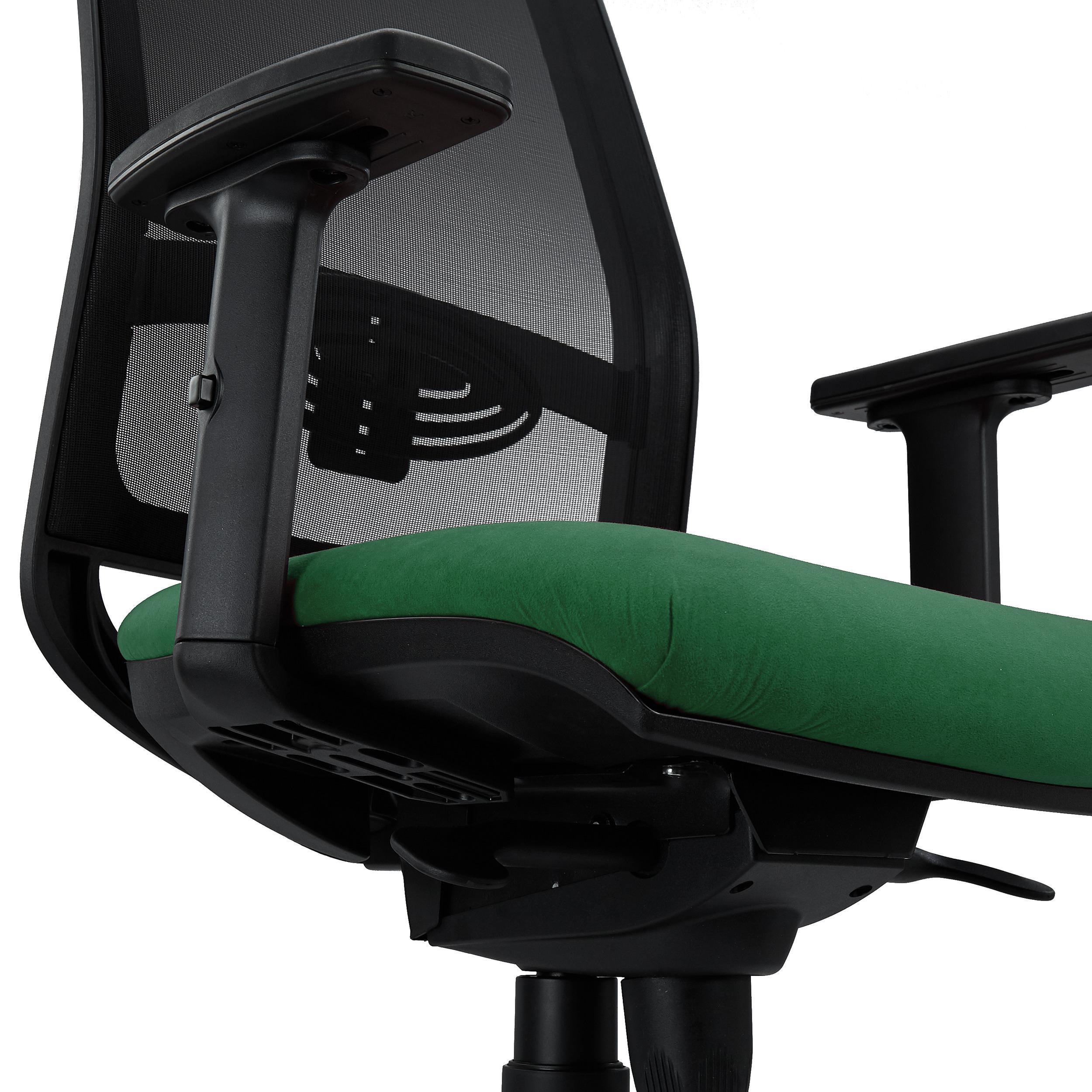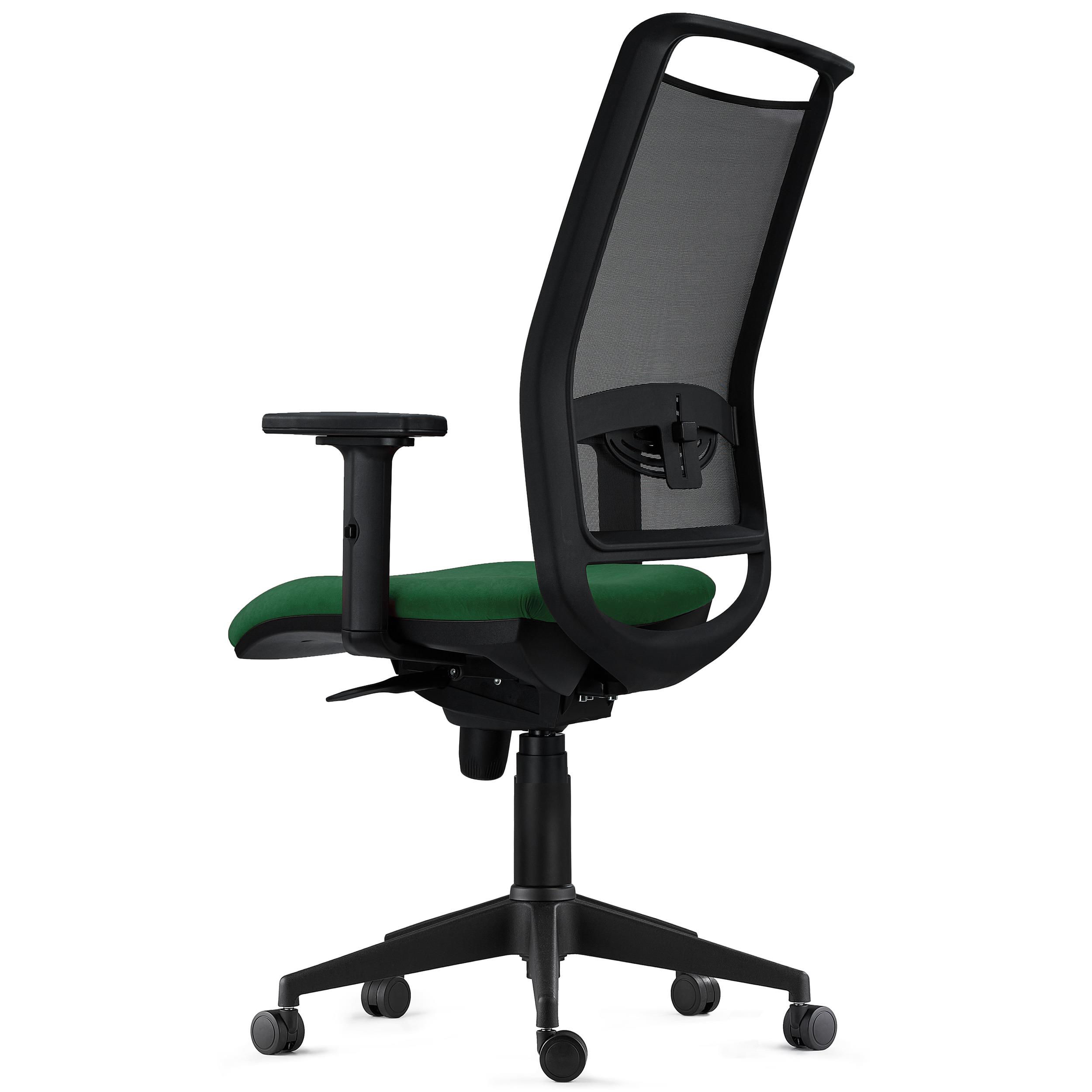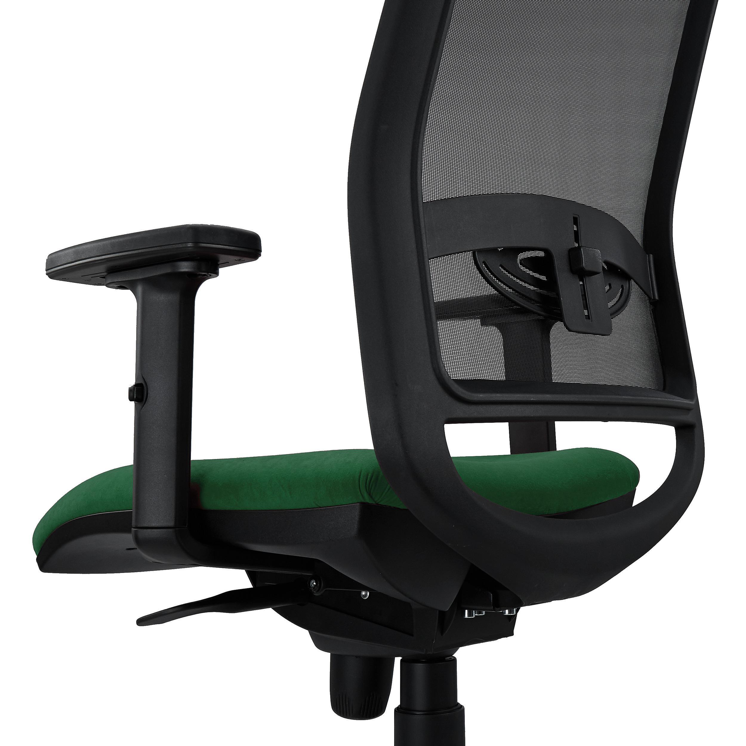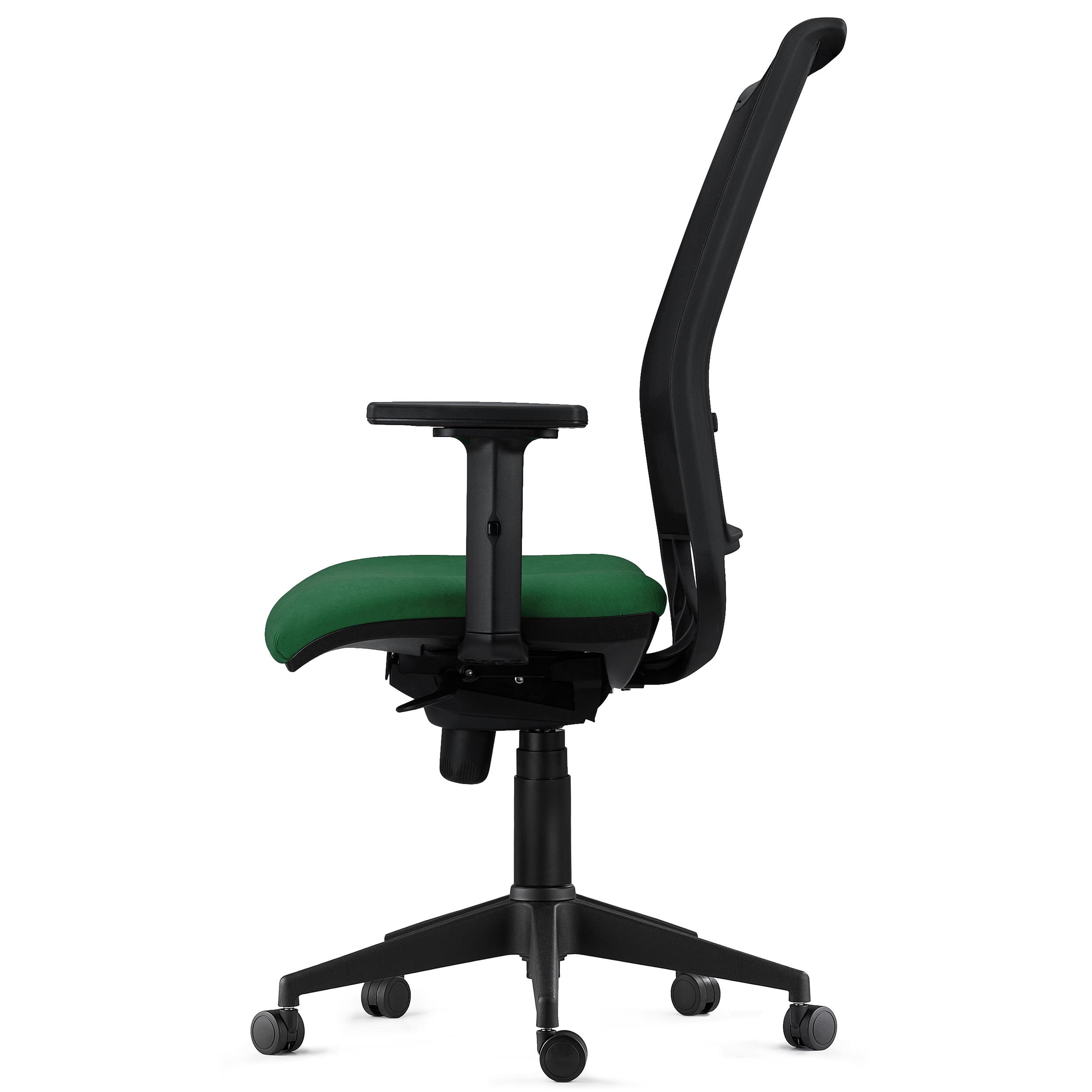 Silla Ergonómica NEPTUNO, Soporte Lumbar, Uso 8 Horas, en Malla Negra y Tela Verde