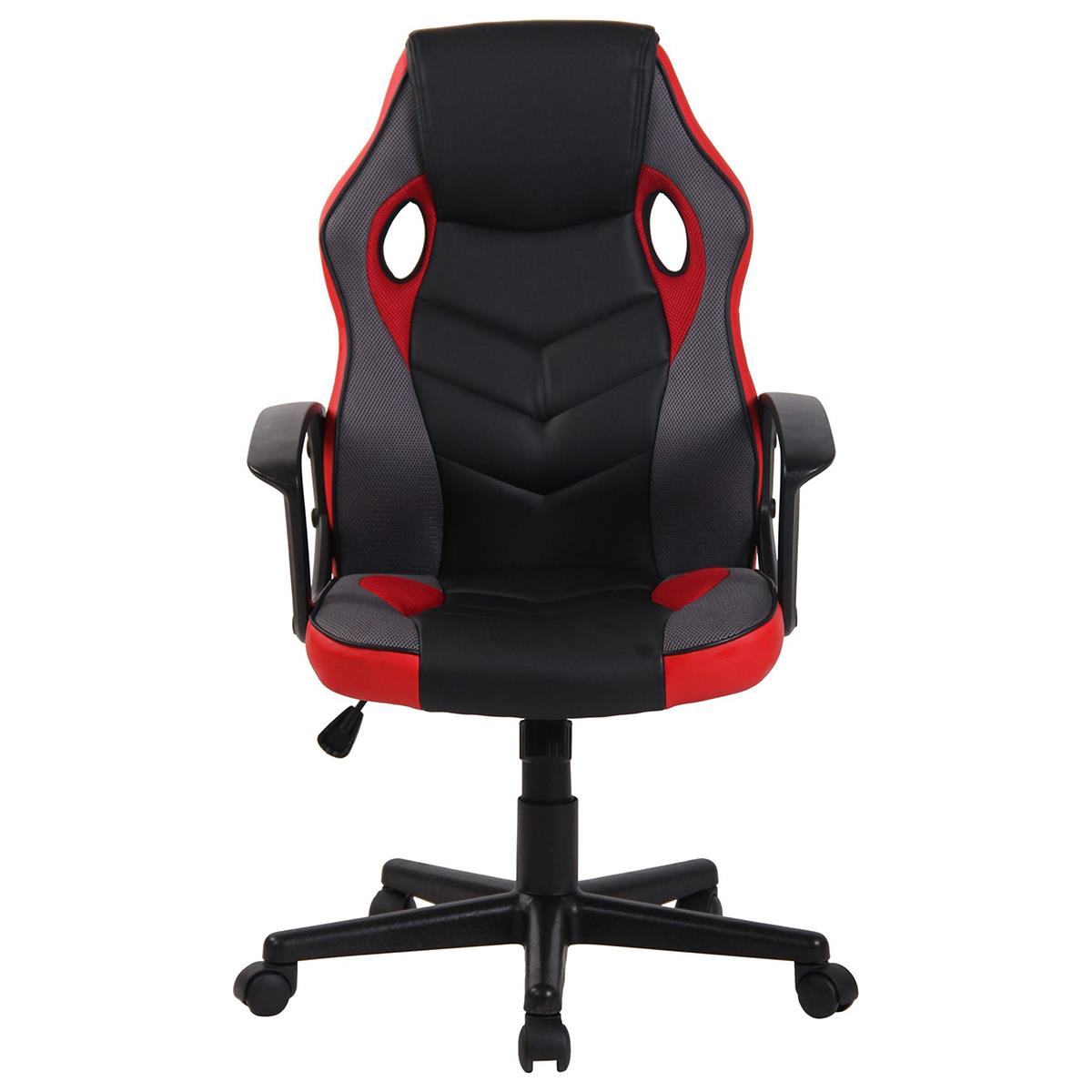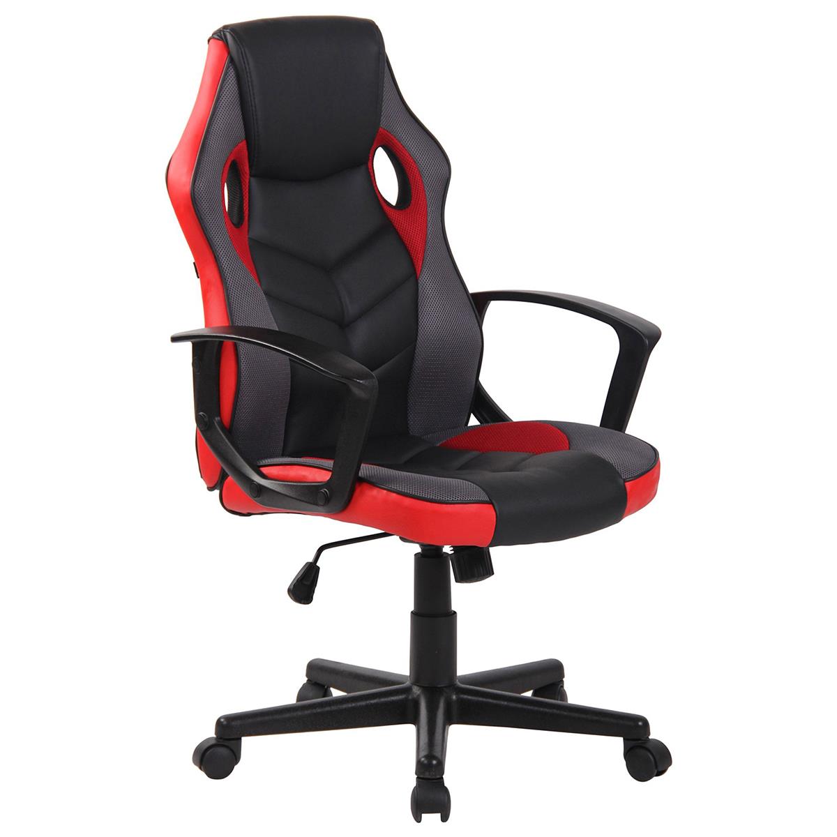 Silla Gaming DELI, Diseño Deportivo, en Malla y Piel, color Negro y Rojo