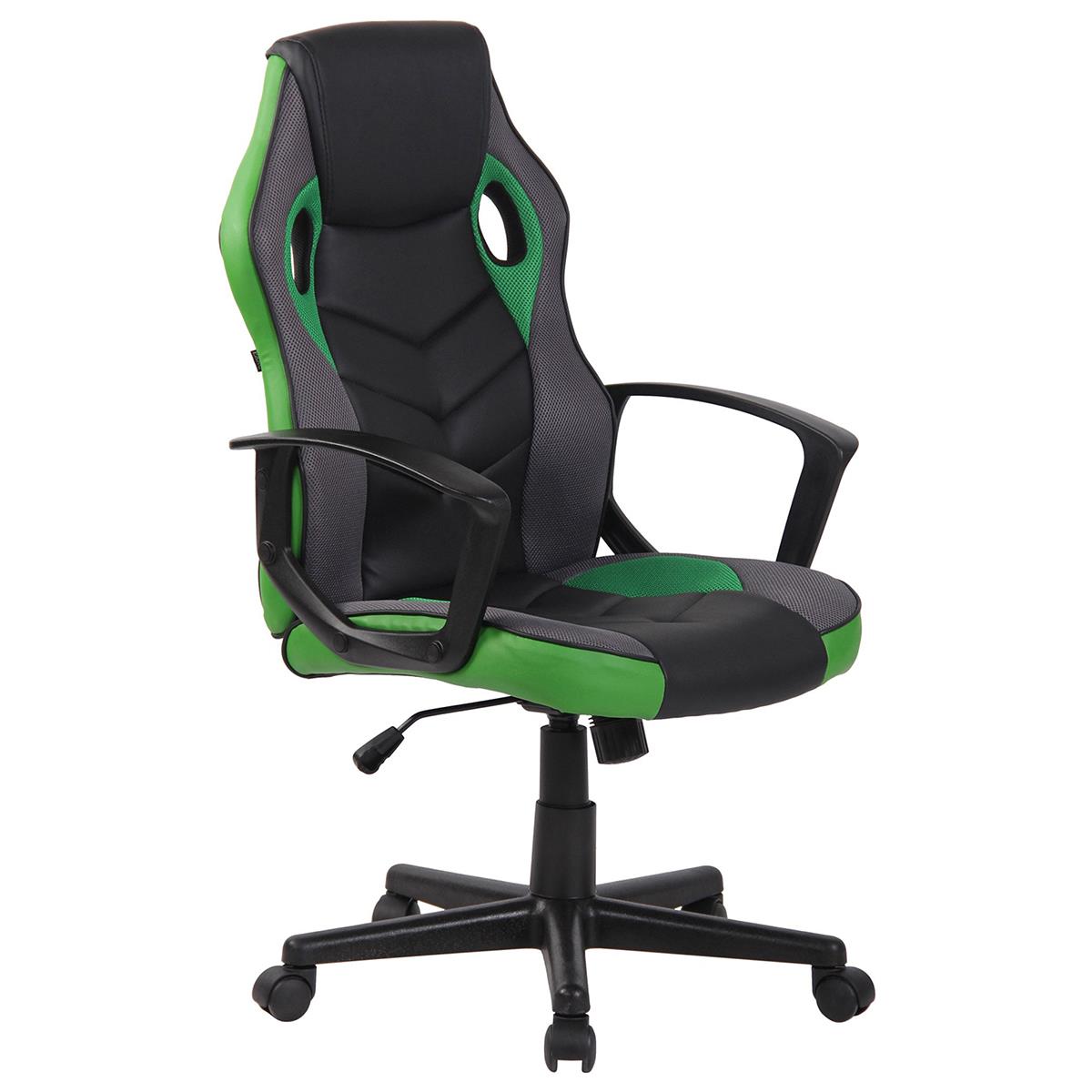 Silla Gaming DELI, Diseño Deportivo, en Malla y Piel, color Negro y Verde