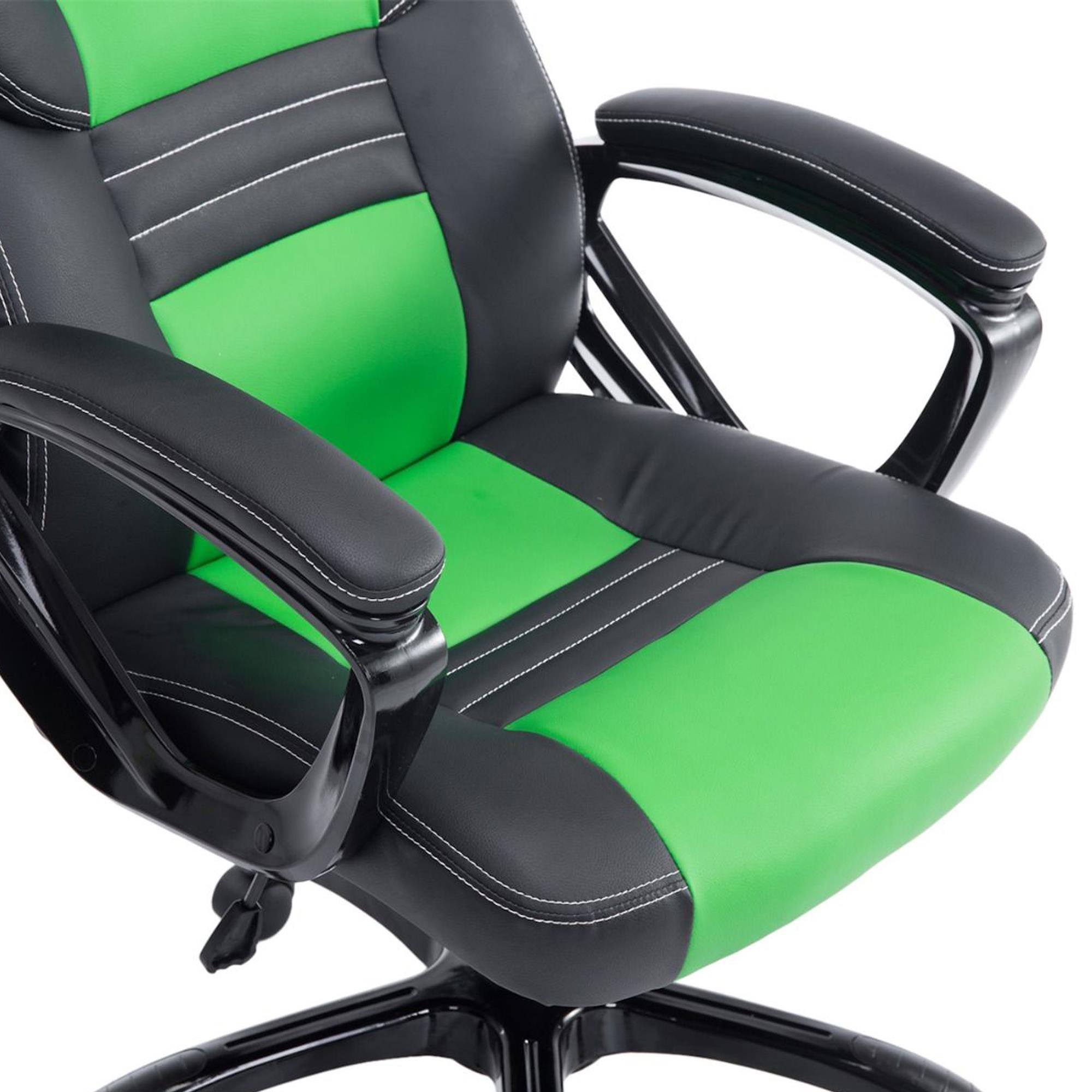 Silla Gaming RAIKONEN, Diseño Deportivo, Grueso Acolchado, en Piel Negra/Verde