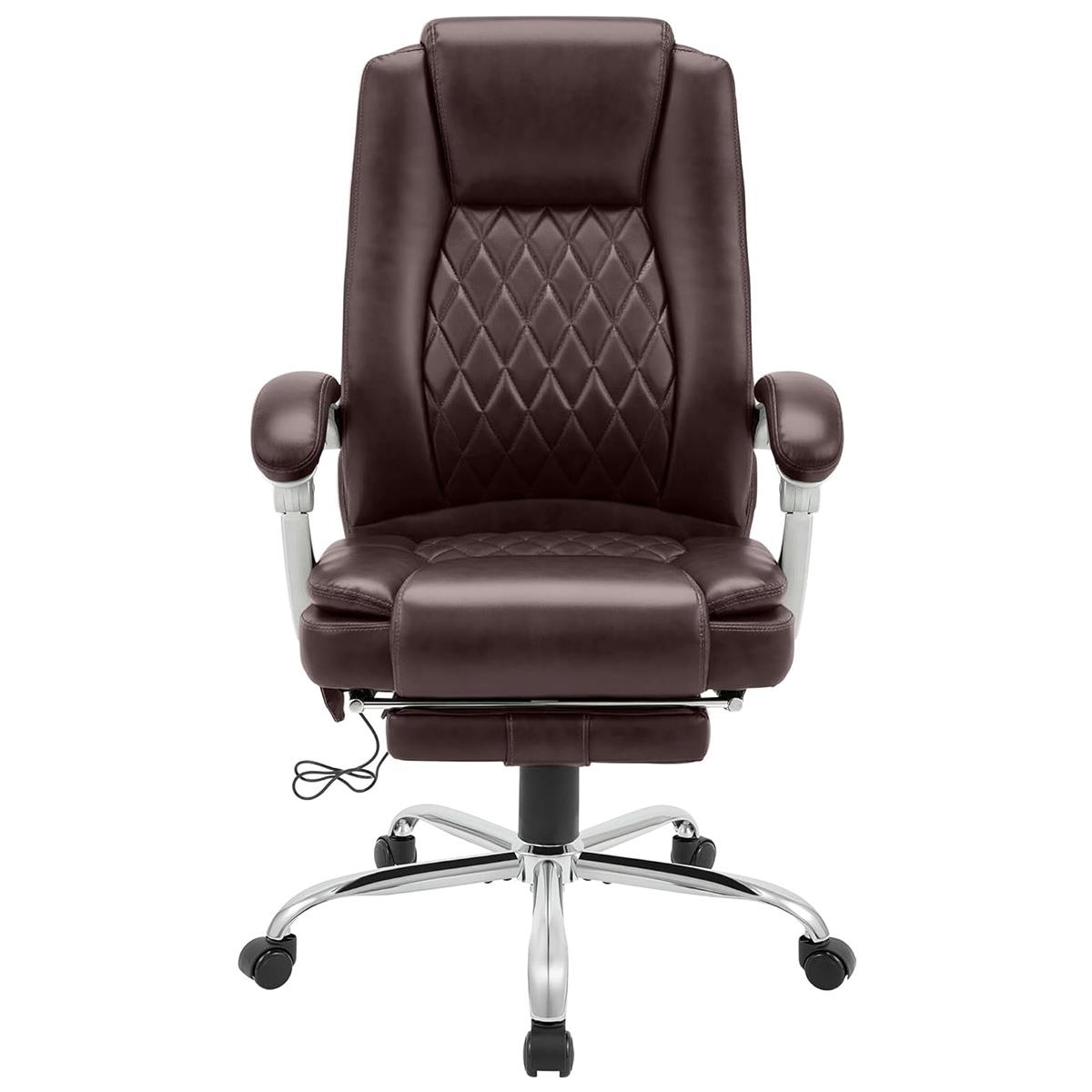 Sillón de Oficina CABUYA, Reposapiés Extensible, Función Masaje, en Piel color Marrón