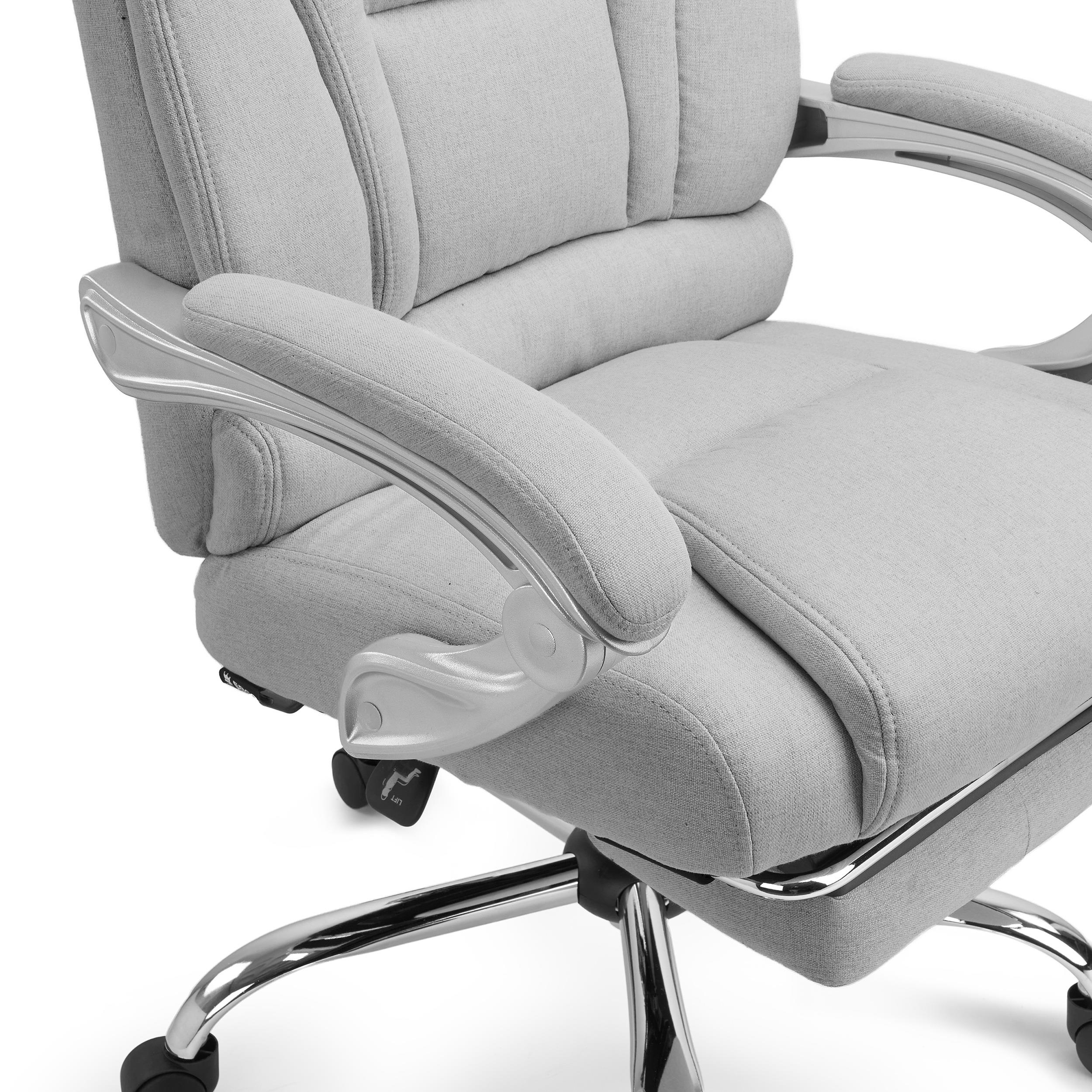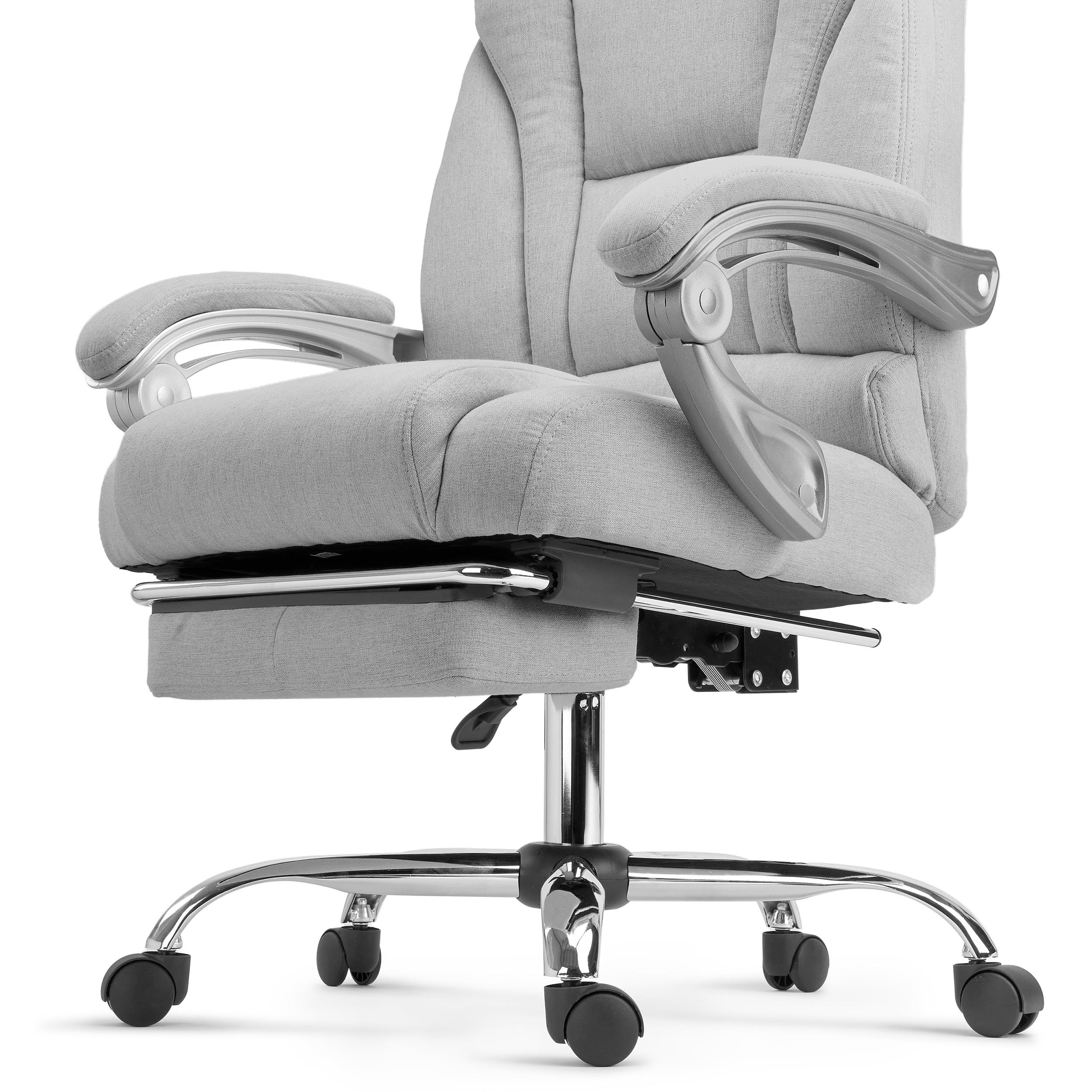 Sillón de Oficina COMODITY TELA, Grueso Acolchado, Reposapiés Extensible, en Gris Claro