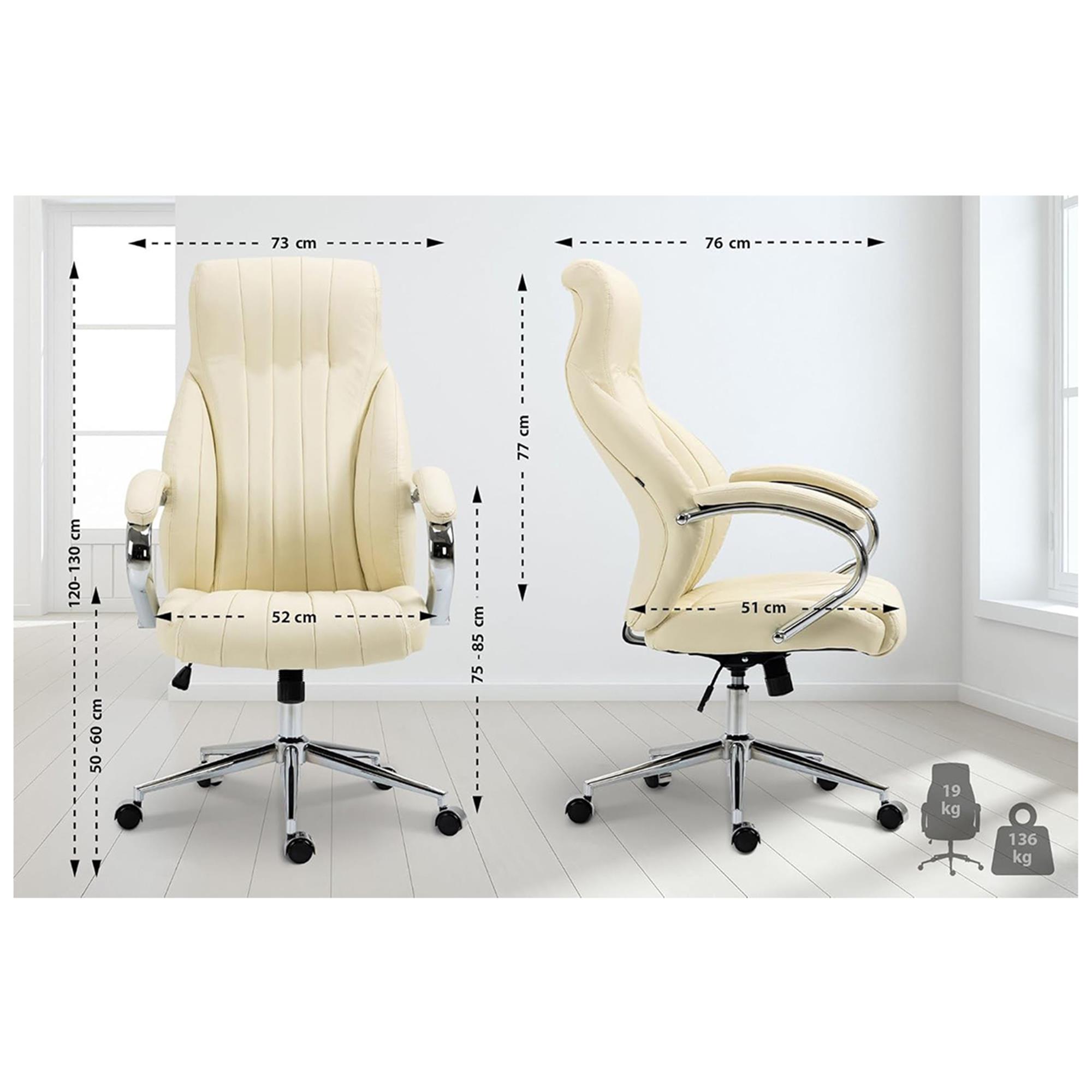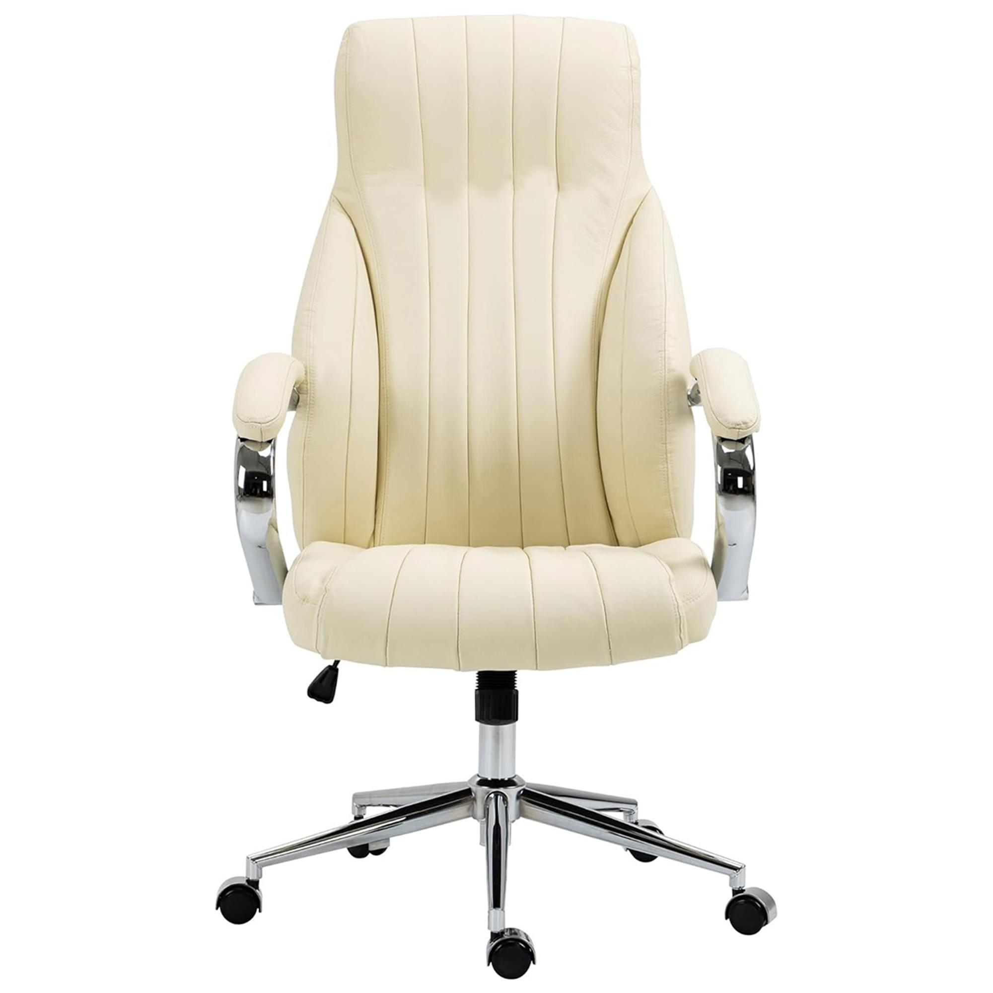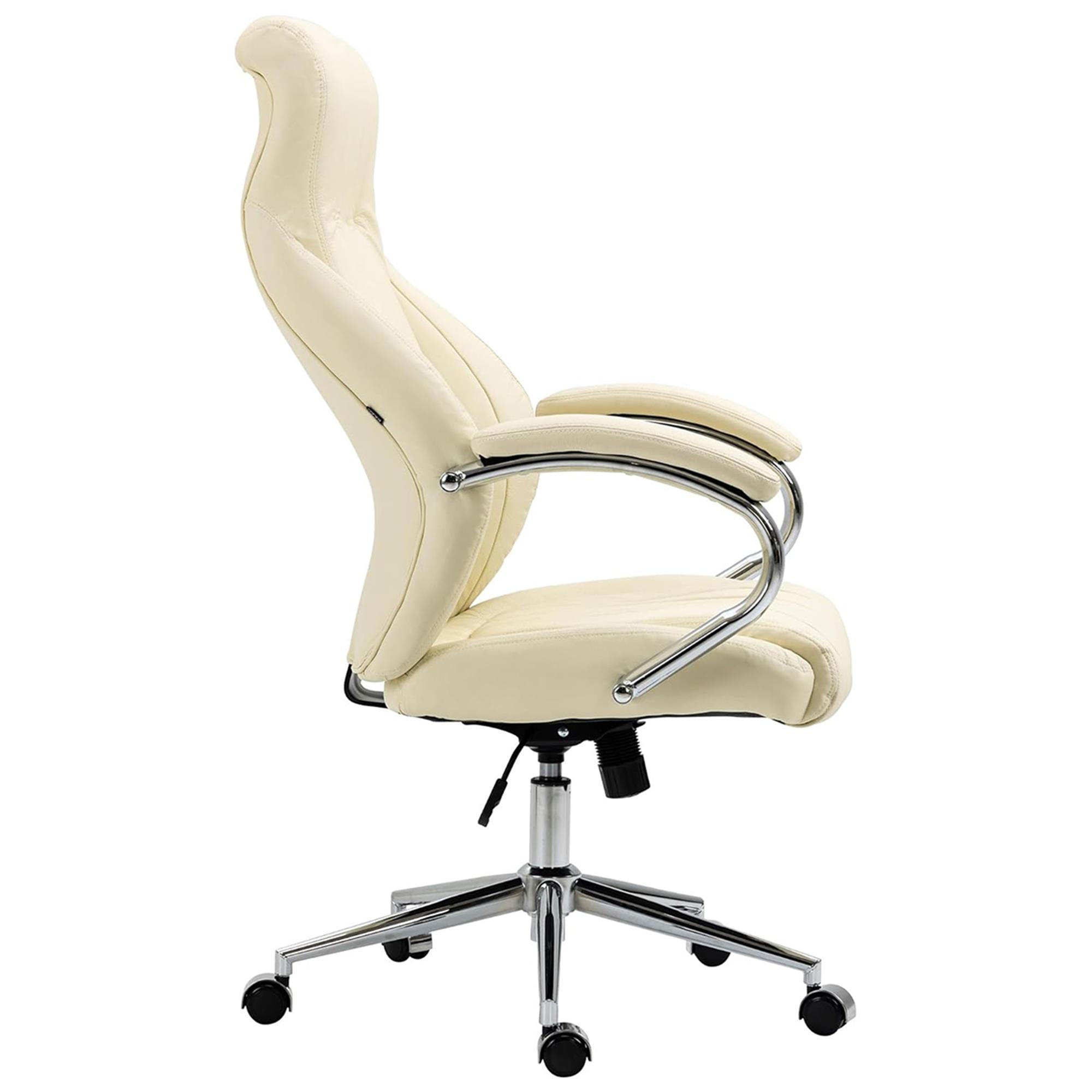 Sillón de oficina DANIA, Diseño Elegante, Gran Acolchado, en Piel Natural color Crema