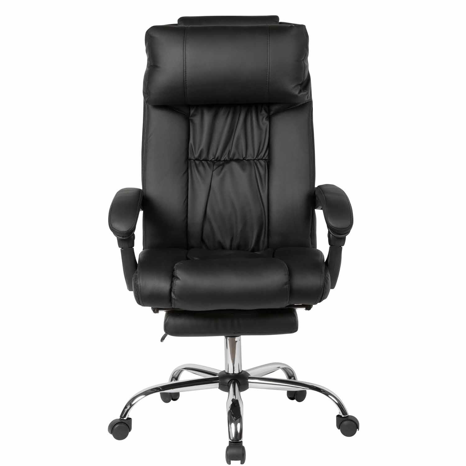 Sillón de Oficina NANDO, Reposapiés Extensible, Respaldo Reclinable, en Piel color Negro