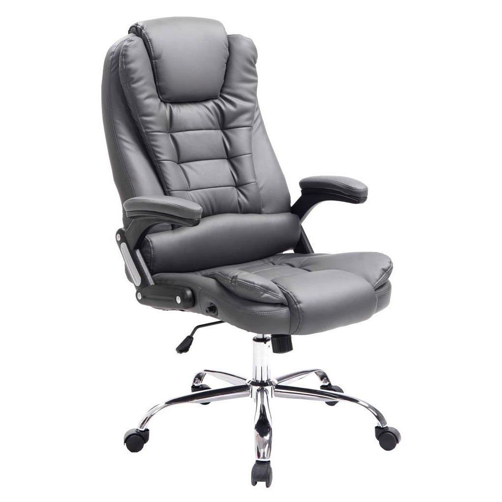 Sillón de Oficina SAN ANTONIO, Gran Acolchado, Resistente hasta 150 kg, en Piel Gris