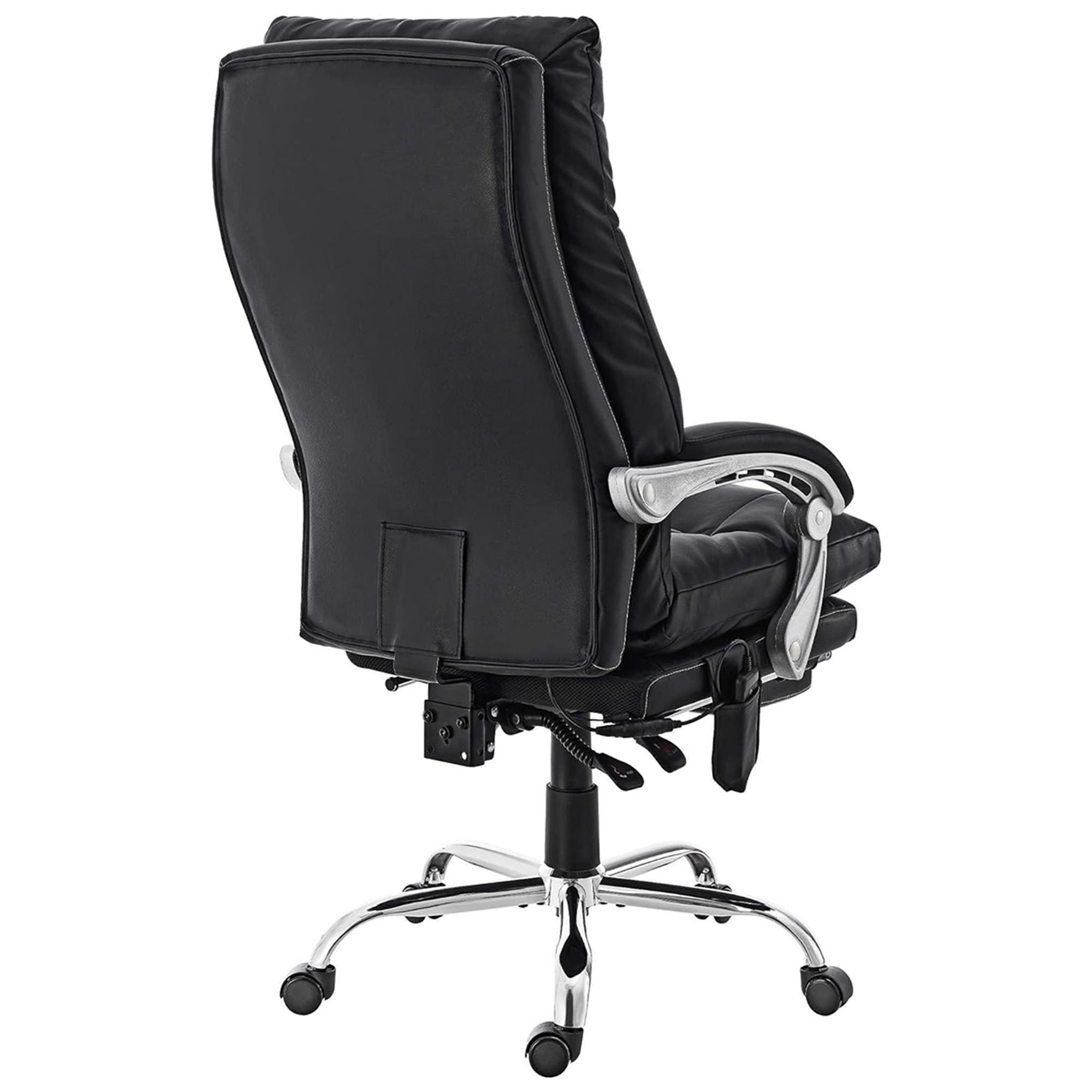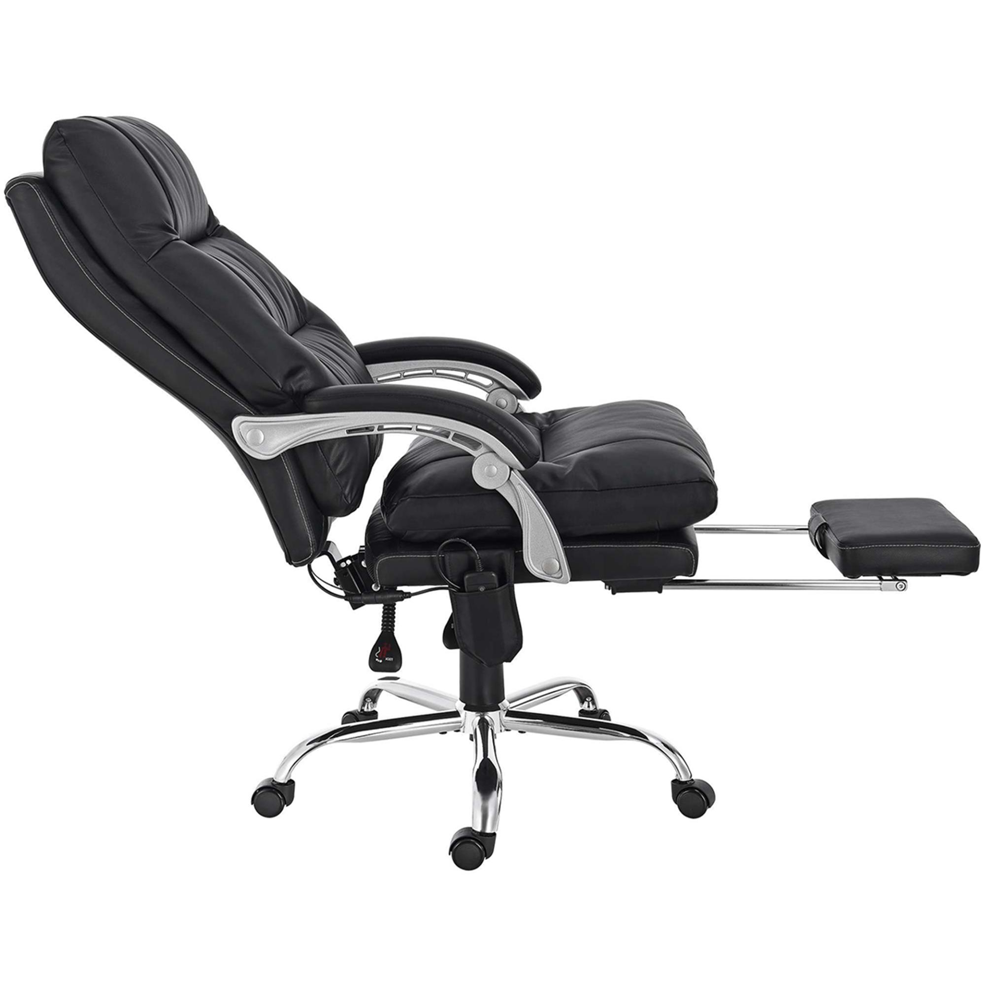 Sillón de Oficina SARMI, Reposapiés Extensible, Función Masaje y Calefactable, en Piel color Negro