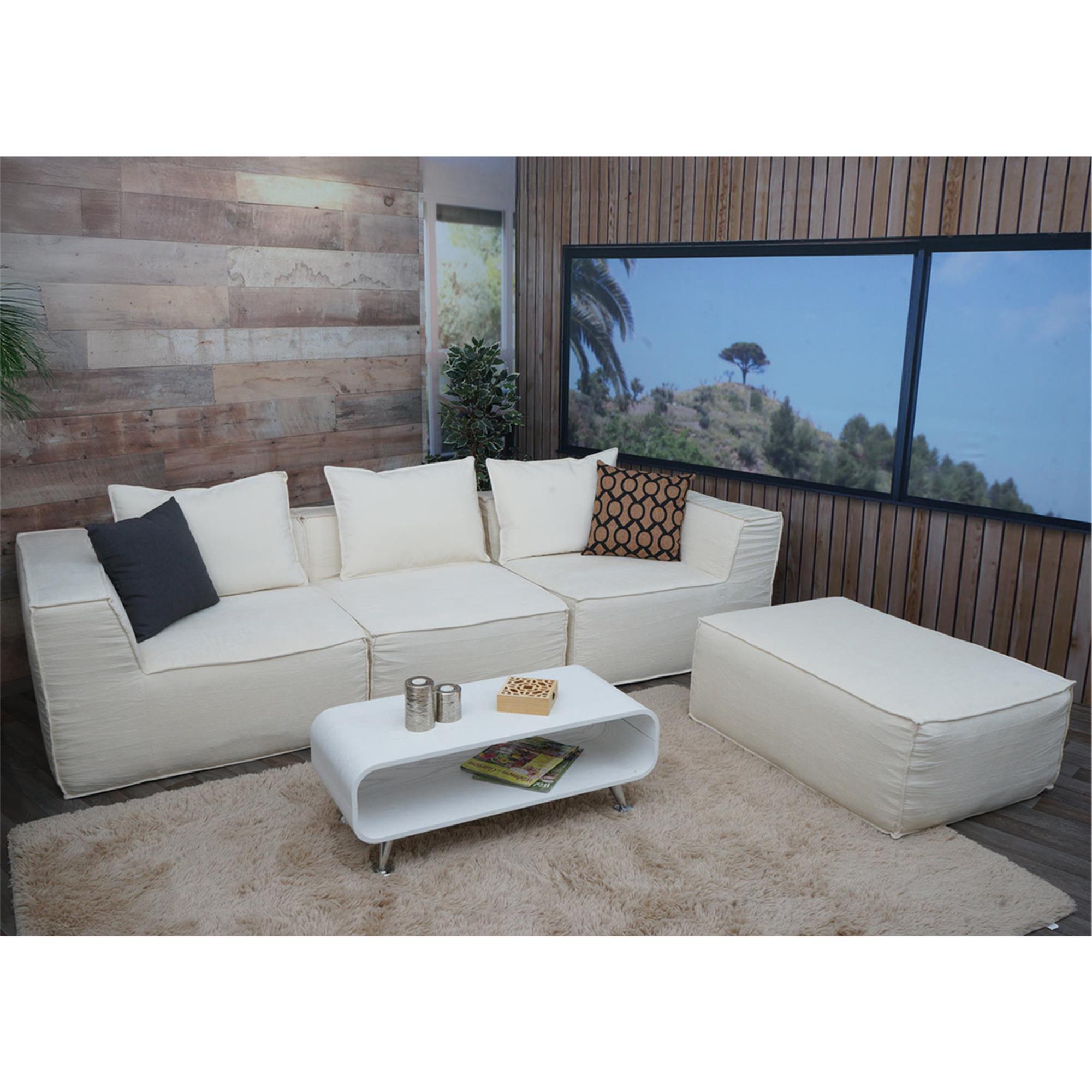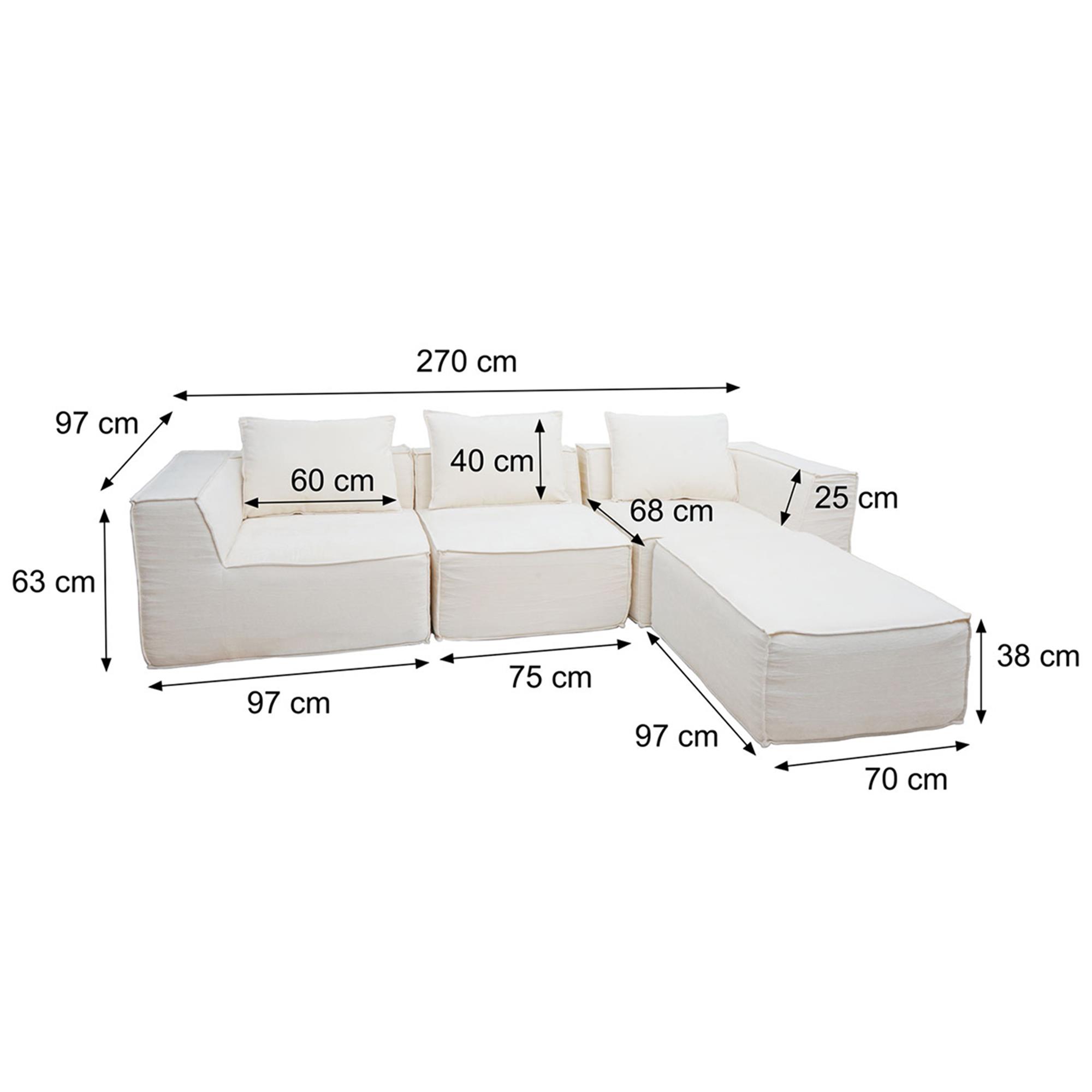 Sofá Modular de 3 plazas NANUK, Con Chaise Longue, Grueso Acolchado, en Tela color Crema