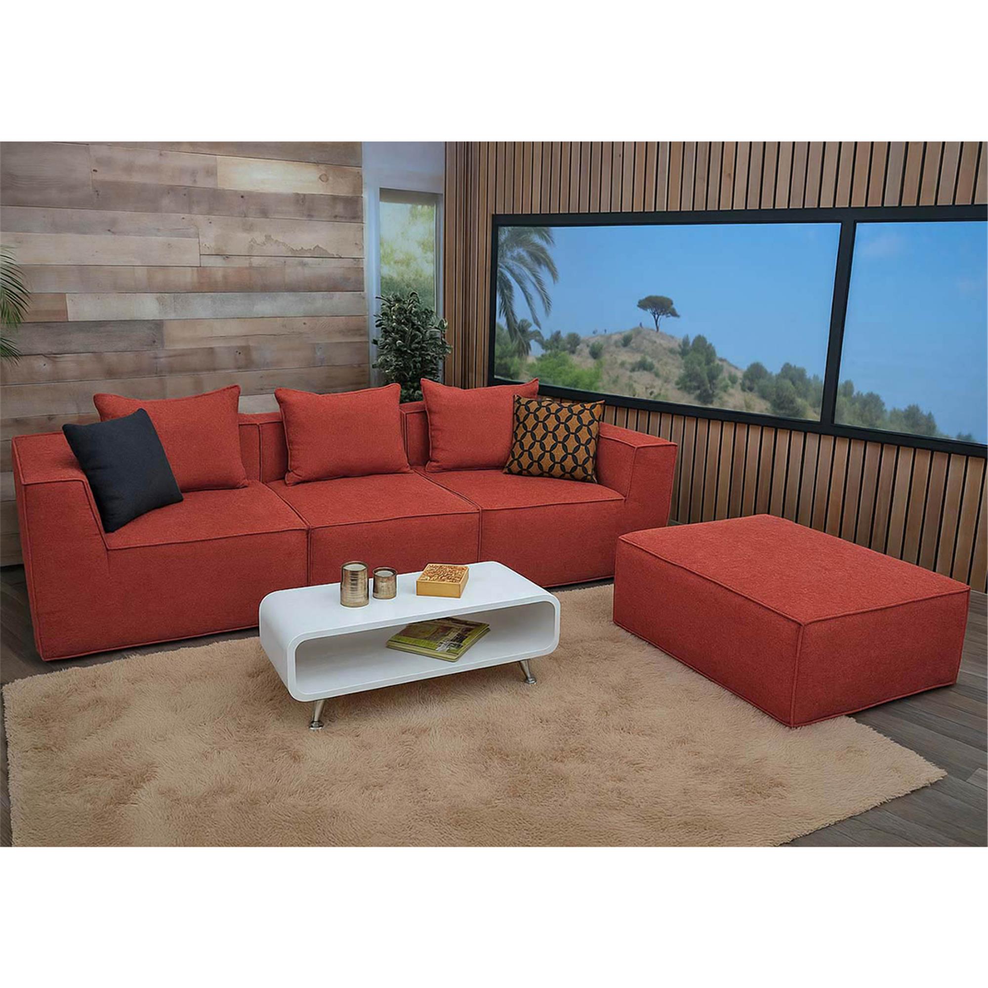 Sofá Modular de 3 plazas NANUK, Con Chaise Longue, Grueso Acolchado, en Tela color Terracota