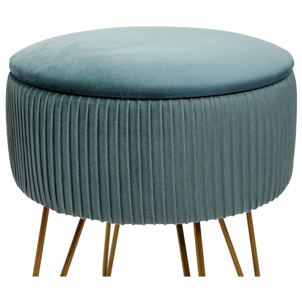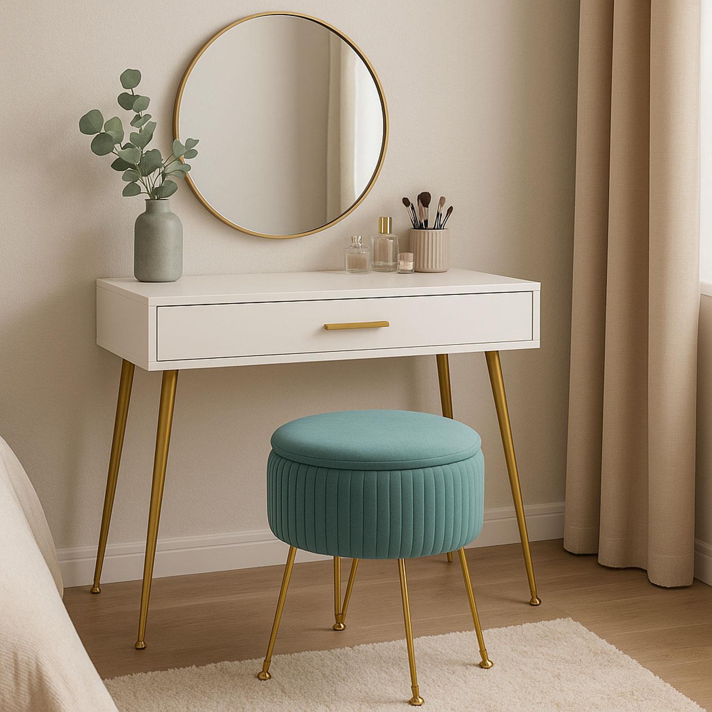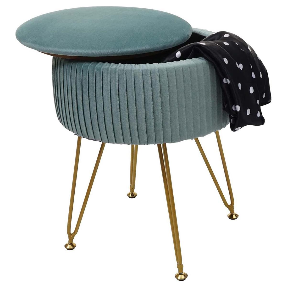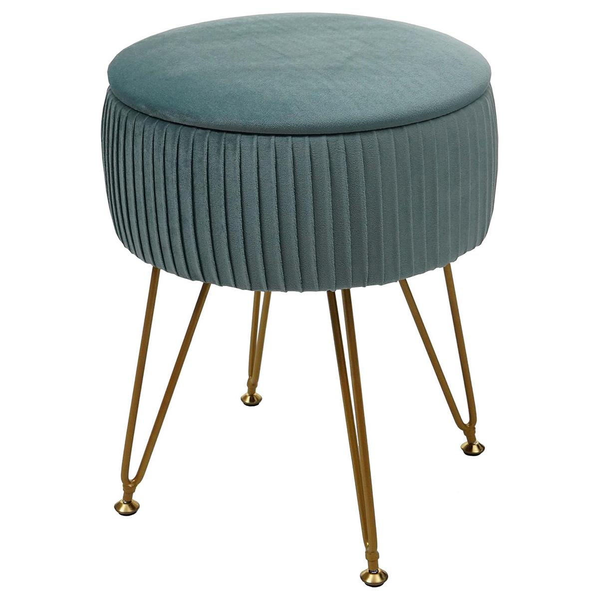 Taburete MEKO, Compartimento Portaobjetos, Patas Doradas, en Tela color Verde