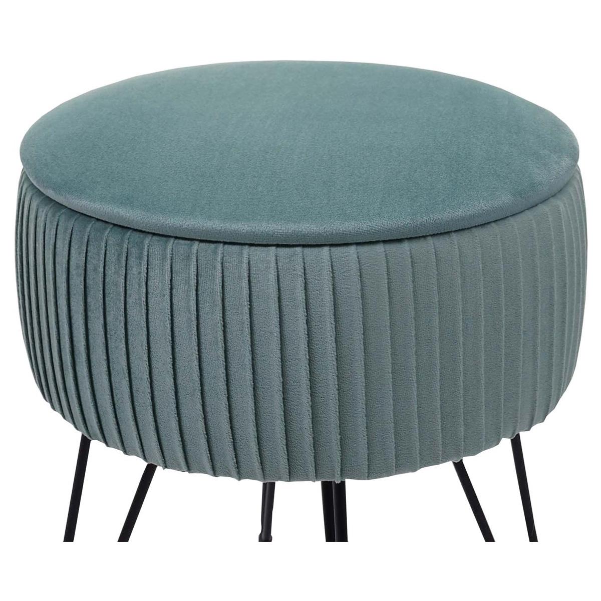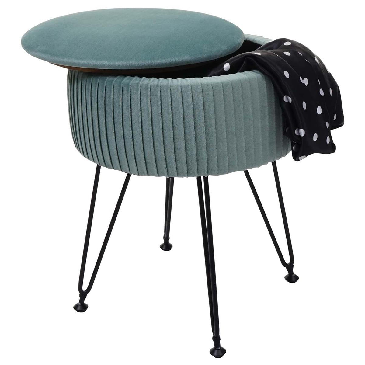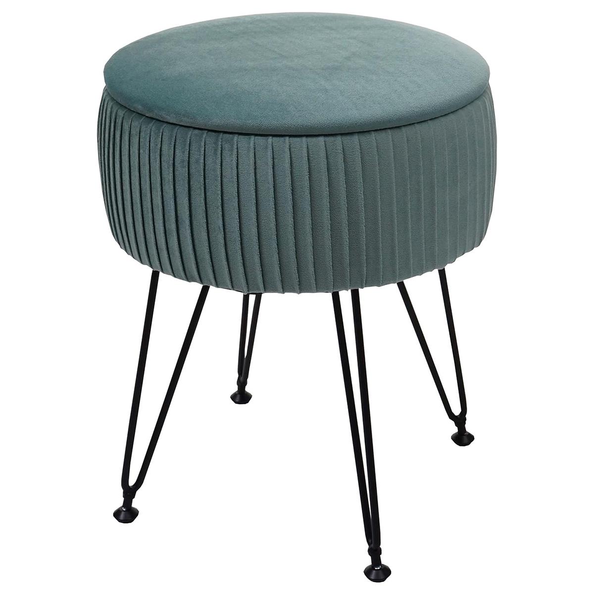 Taburete MEKO, Compartimento Portaobjetos, Patas Negras, en Tela color Verde