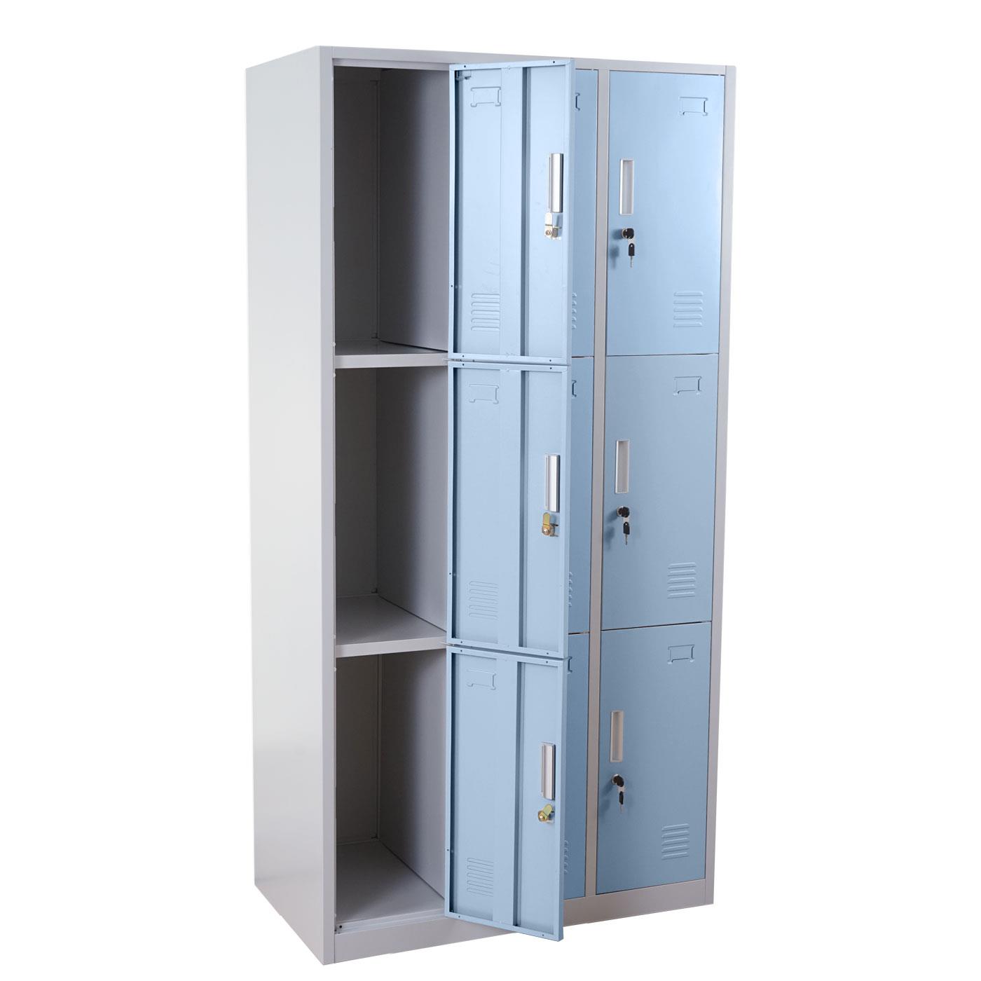 Estamos ante un armario de amplias dimensiones (180 x 90 x 50 cm), por lo que ofrece una considerable capacidad de almacenaje. Cuenta con 9 puertas con cerradura y un gran ángulo de apertura (130º) ideal para introducir y sacar los objetos con total comodidad. Cada puerta incluye llave de repuesto.